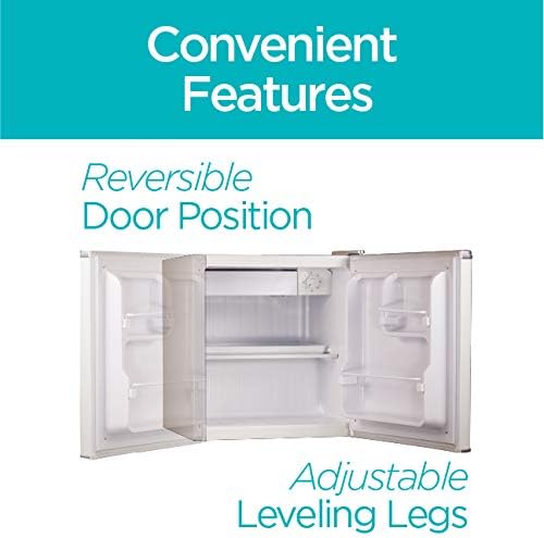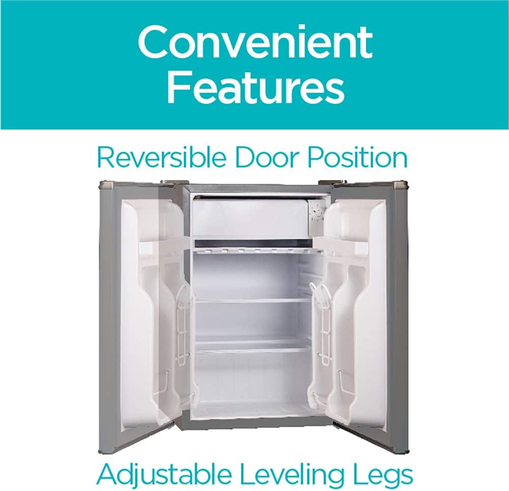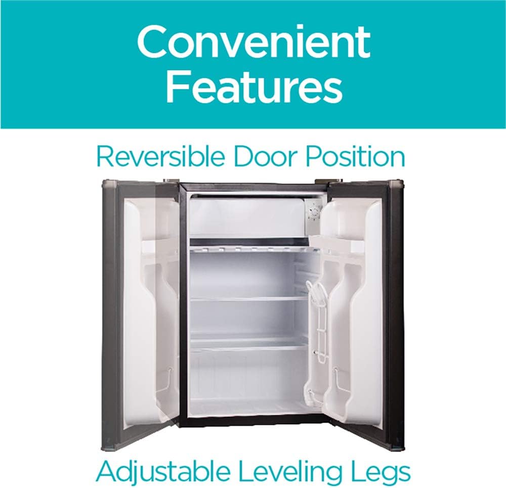 - Convenient features - A reversible door, leveling legs, and adjustable temperature control (33.8 degrees Fahrenheit at the lowest setting) make this mini fridge even more practical. The small freezer (8 inches wide x 2 inches tall) fits ice packs, most frozen dinners, and the included ice tray