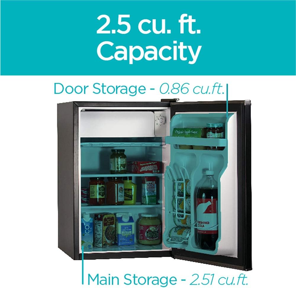 - Compact & stylish - This space saving small refrigerator (17.5" x 18.5" x 19.7") stores food, soda, beer, and other beverages with minimal energy (70 watts) and without taking up too much space. The sleek, modern design - available in black, stainless steel, and white - is perfect for college dorm rooms, offices, garages, home bars, small apartments, and RV campers