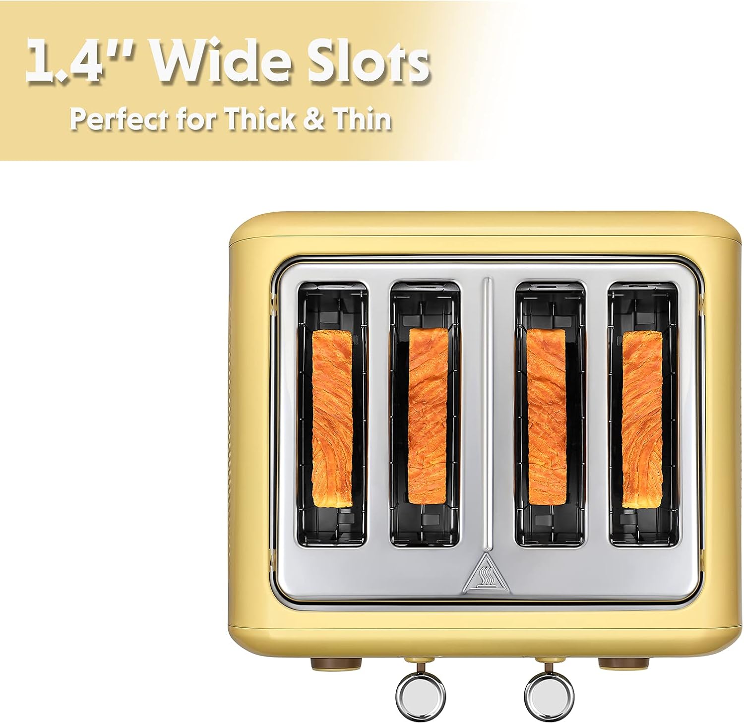- Extra Wide Slots - 2-wide (1.4'') slots with self-centering guides & high-lift lever, perfect for different kinds of slices.And its compact design can save space on your countertop.