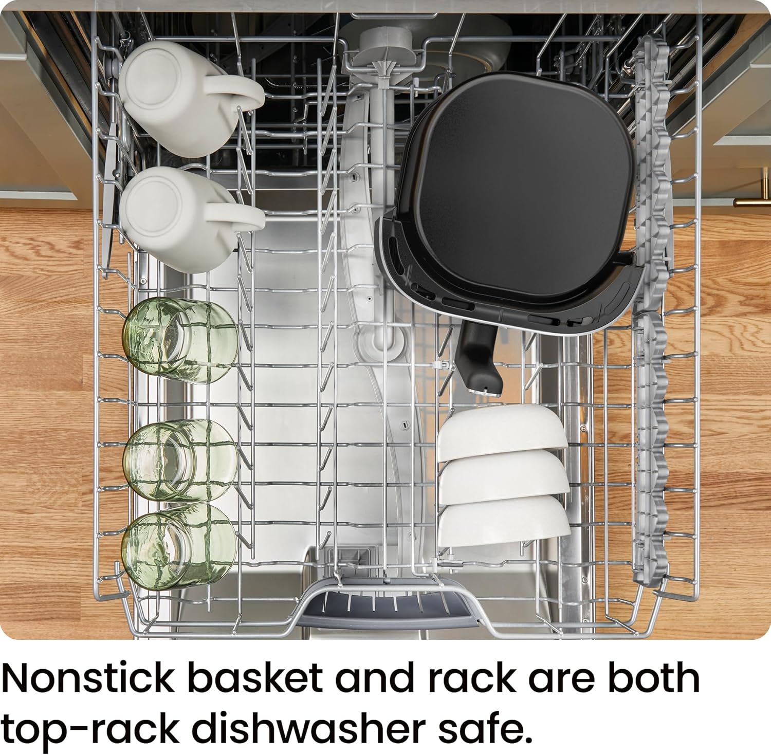 - SIMPLE CLEAN-UP: The nonstick 2-quart basket and rack are both dishwasher safe to keep clean-up fast and simple.