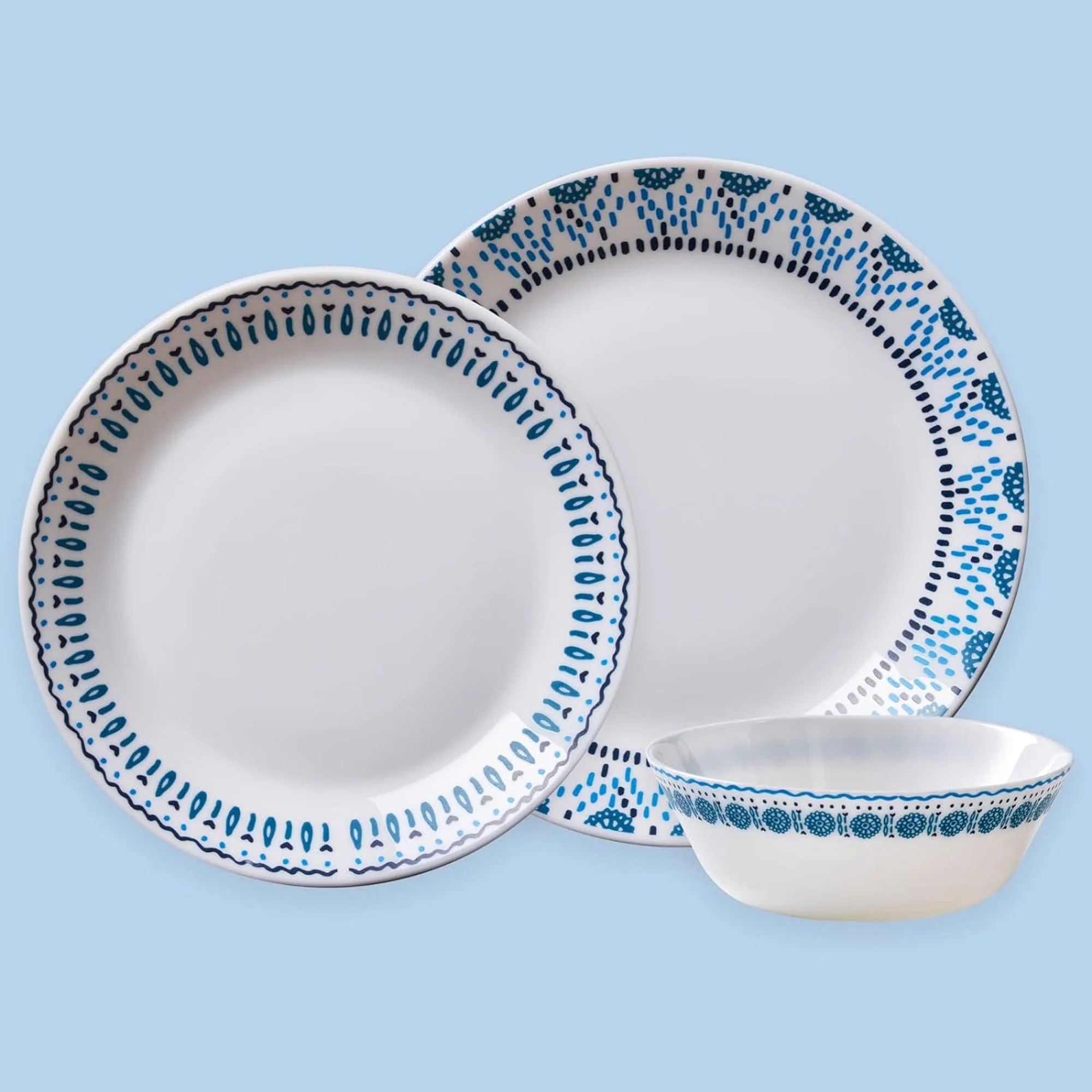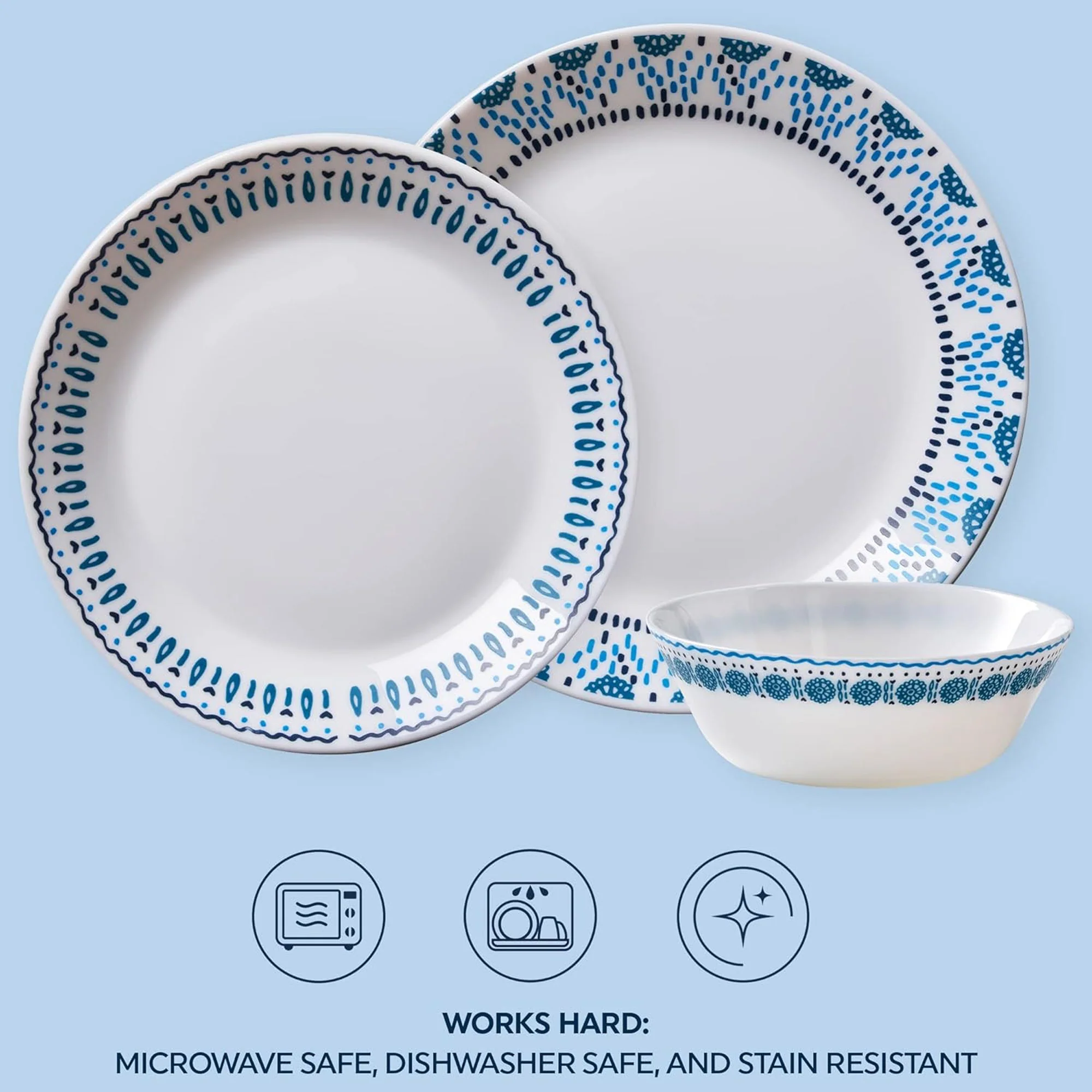 Ditch the boring dinnerware routine! Corelle's Everyday Expressions 12-Piece Dinnerware Set in Azure Medallion is your ticket to a stylish and sustainable table. This service for four features a captivating medallion design in a cool, calming blue on a crisp white background. But the beauty doesn't stop there ?these dishes are crafted from Corelle's durable Vitrelle glass, making them chip, crack, and scratch-resistant. Plus, they're crafted with eco-conscious materials, so you can feel good about setting the table.