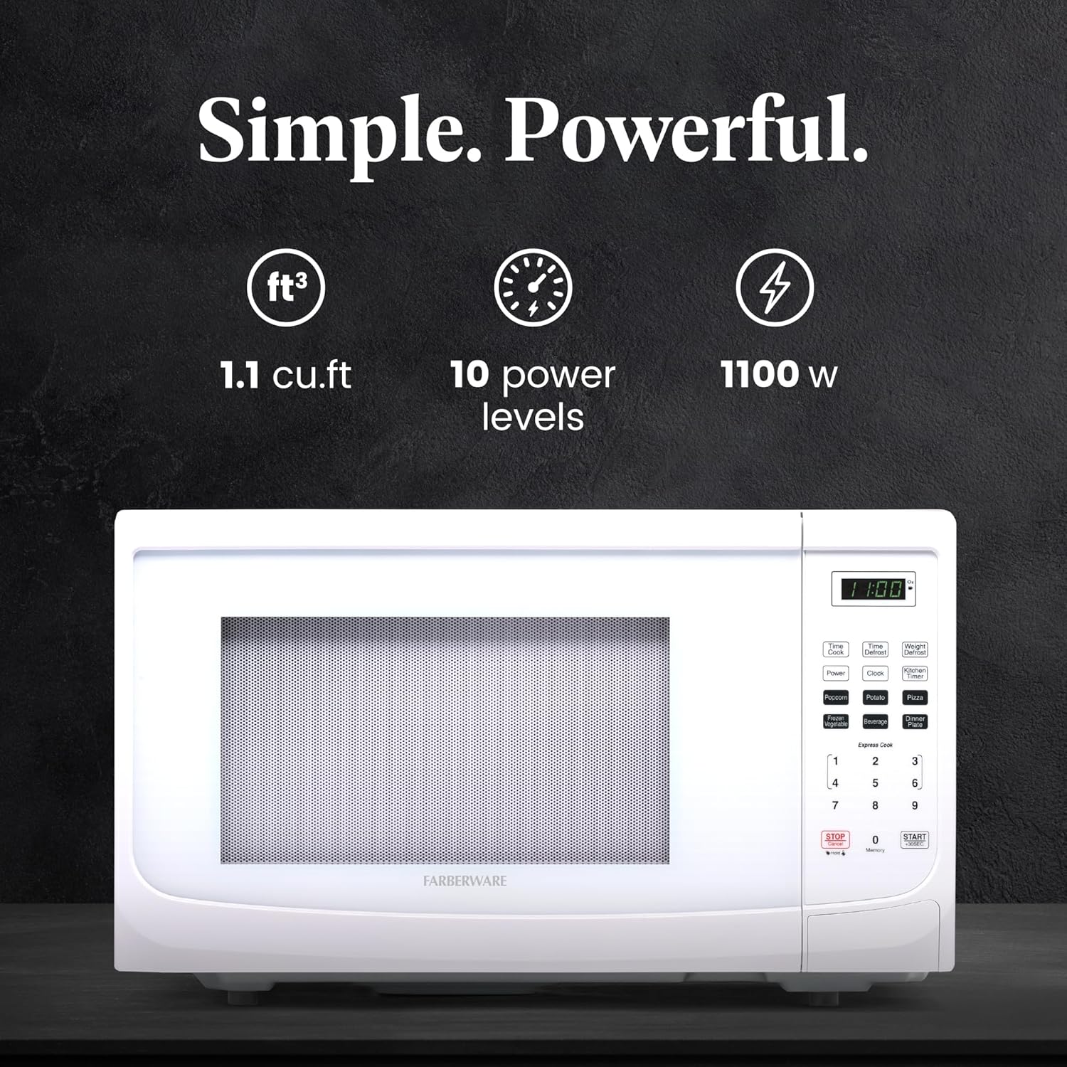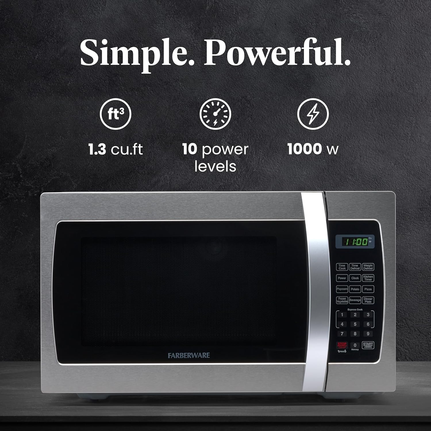 - POWERFUL SETTINGS: This microwave has ten power levels with multi-stage cooking. You can fully customize your cooking with six one-touch options, including popcorn, potato, and pizza. Defrost by weight or by time settings to make quick work of any task.