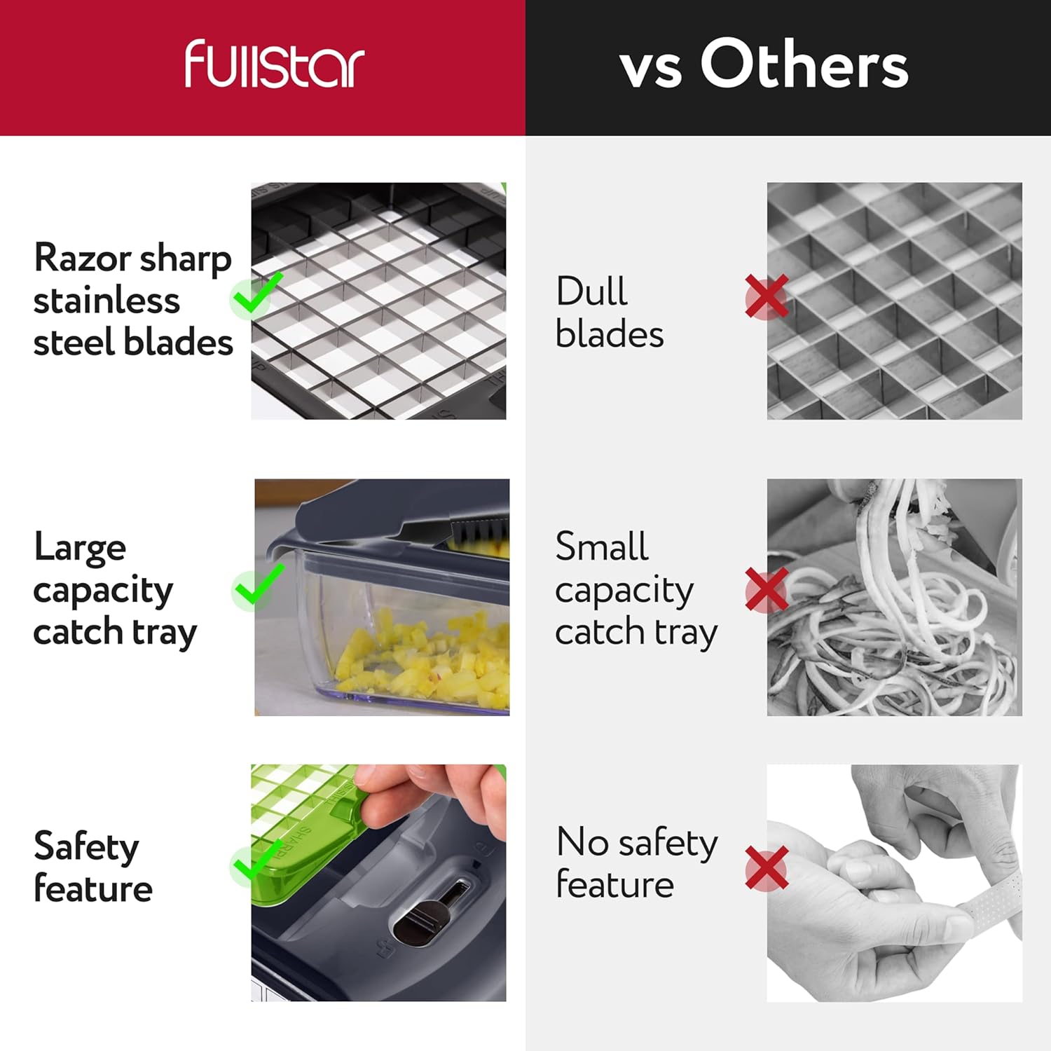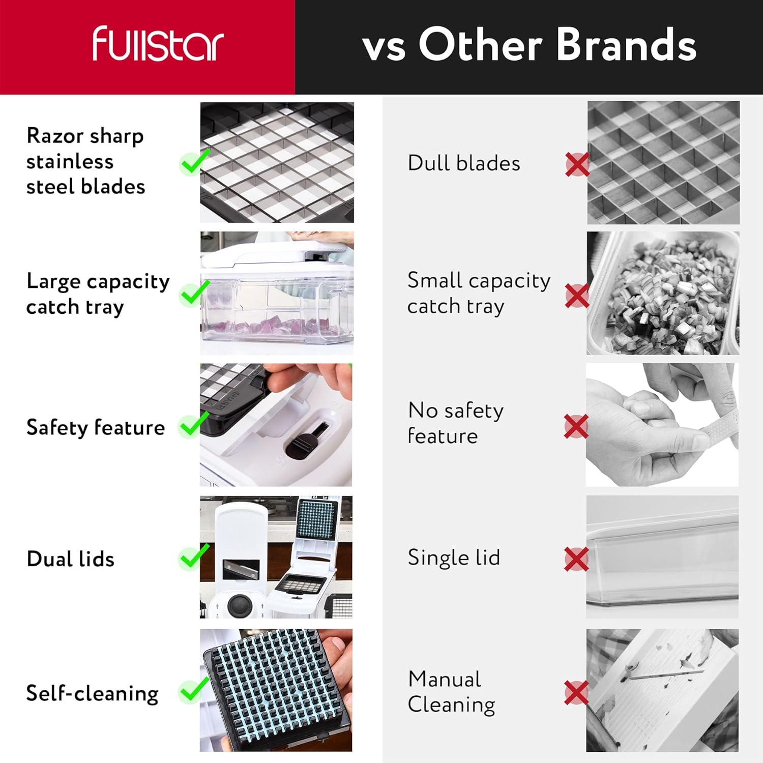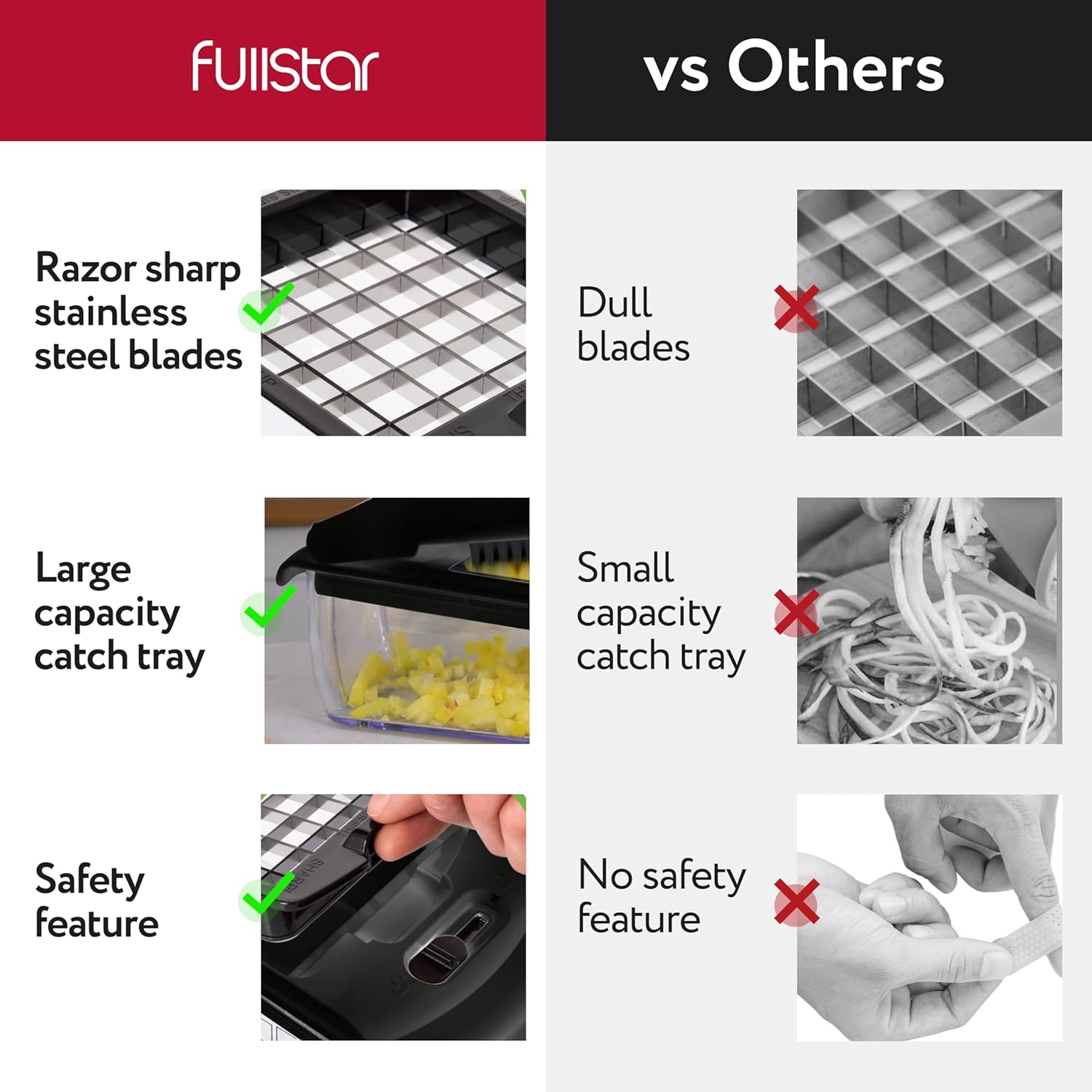 - A Kitchen Essential - Whether you're a novice cook or a seasoned pro, the Fullstar Food Chopper is a must-have in any kitchen. It's versatile and easy to use. Please read the instruction manual provided with the Fullstar food chopper closely before use.