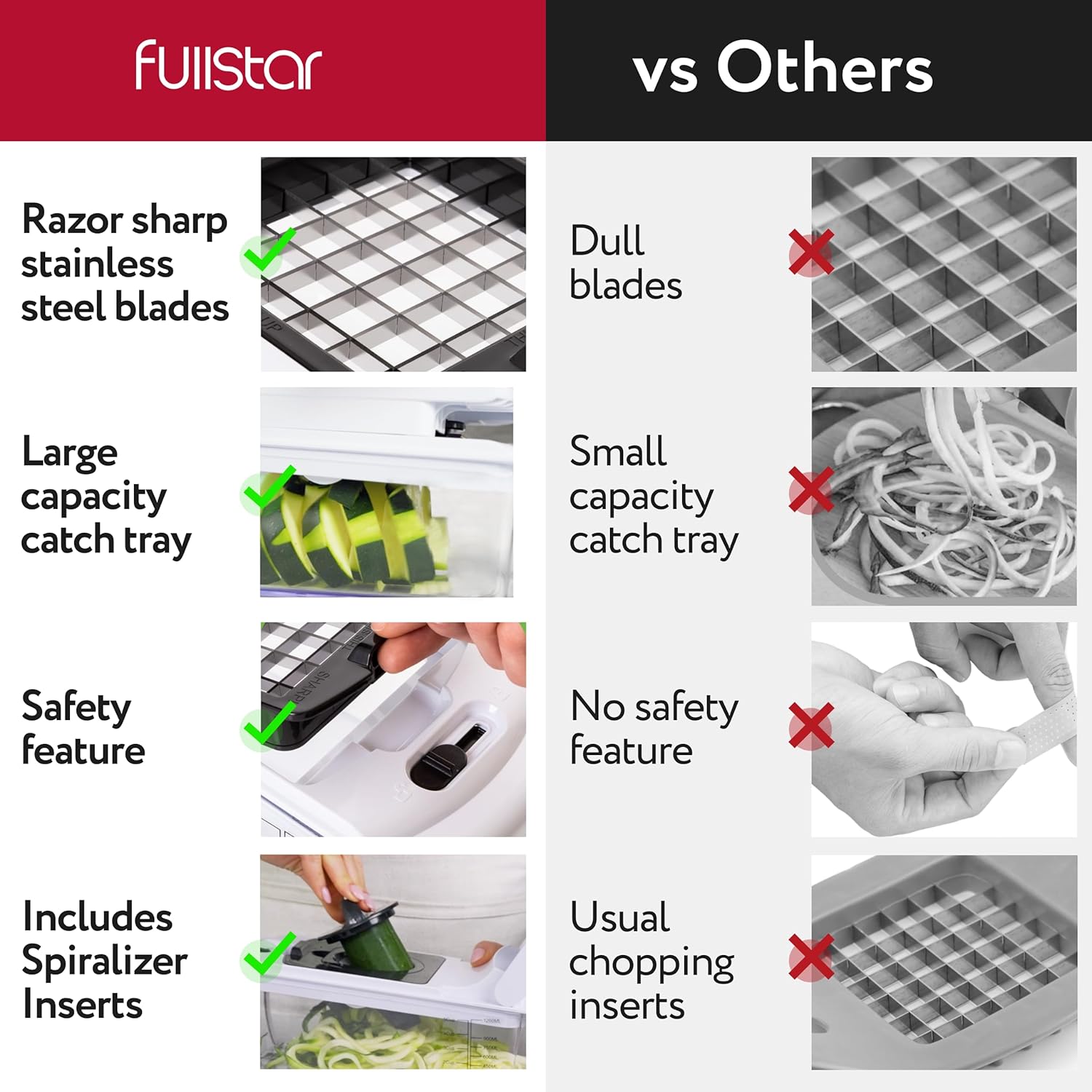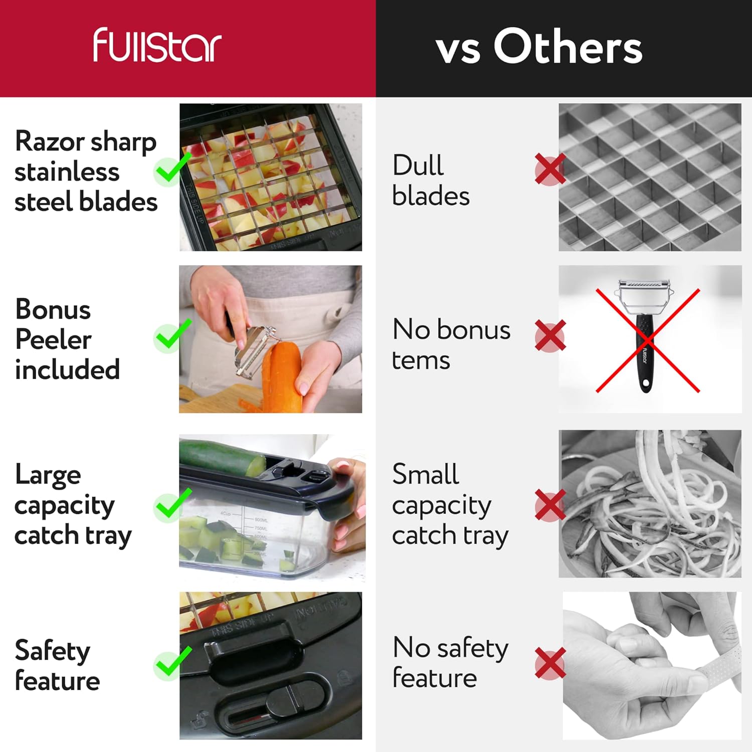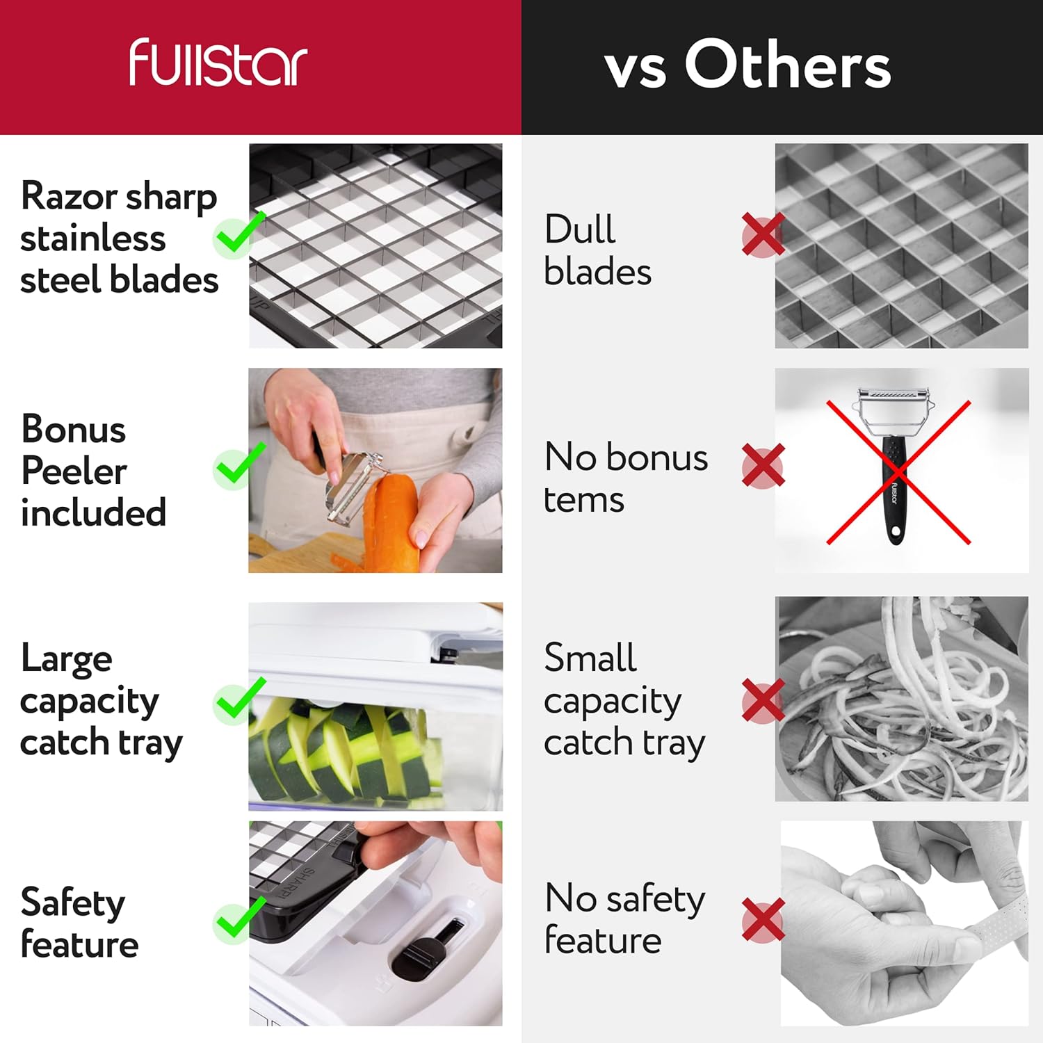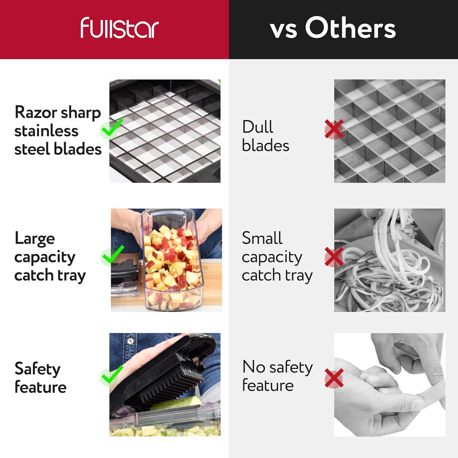 - A Kitchen Essential - Whether you're a novice cook or a seasoned pro, the Fullstar Food Chopper is a must-have in any kitchen. It's versatile and easy to use. Please read the instruction manual provided with the Fullstar food chopper closely before use.