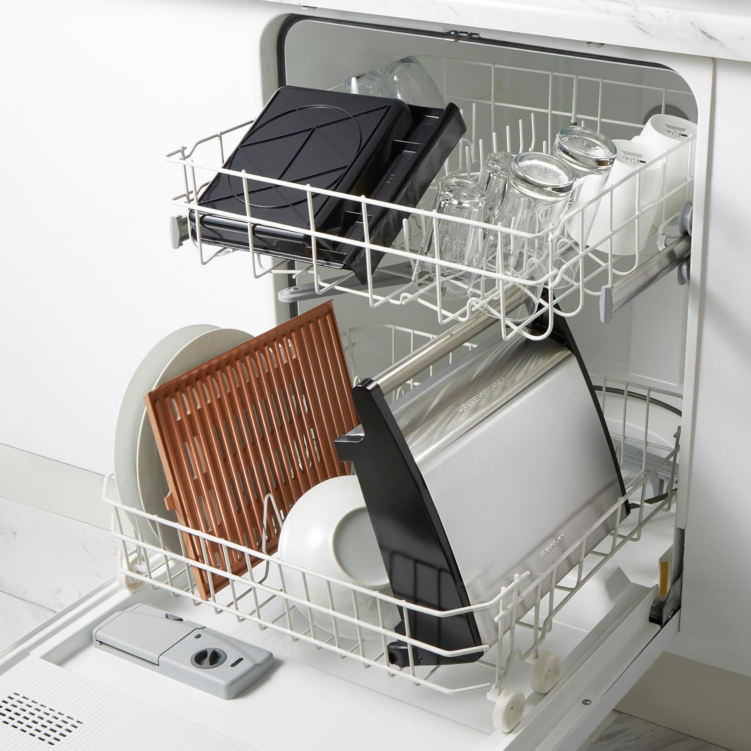 - LESS MESS WITH EXTRA-LARGE DRIP TRAY. The tray fits right underneath the cooking surface, which directs drips into the tray as you grill, catching juices before they spill. After cooking, it slides out for easy cleanup in the dishwasher.