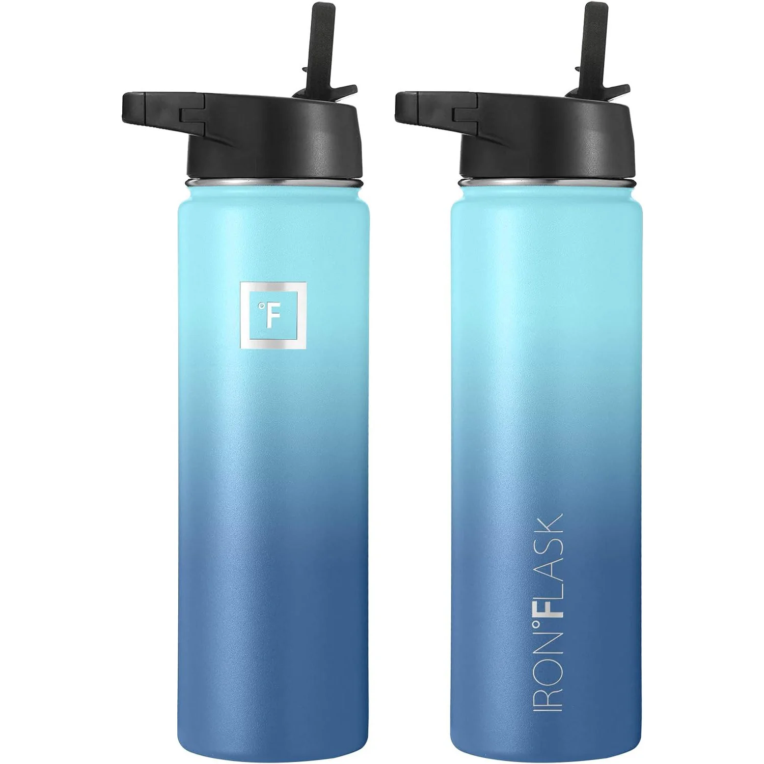 • IRON FLASK Sports Water Bottle 3 Lids, Leak Proof, Metal Canteen, Blue Waves, 22 Ounces