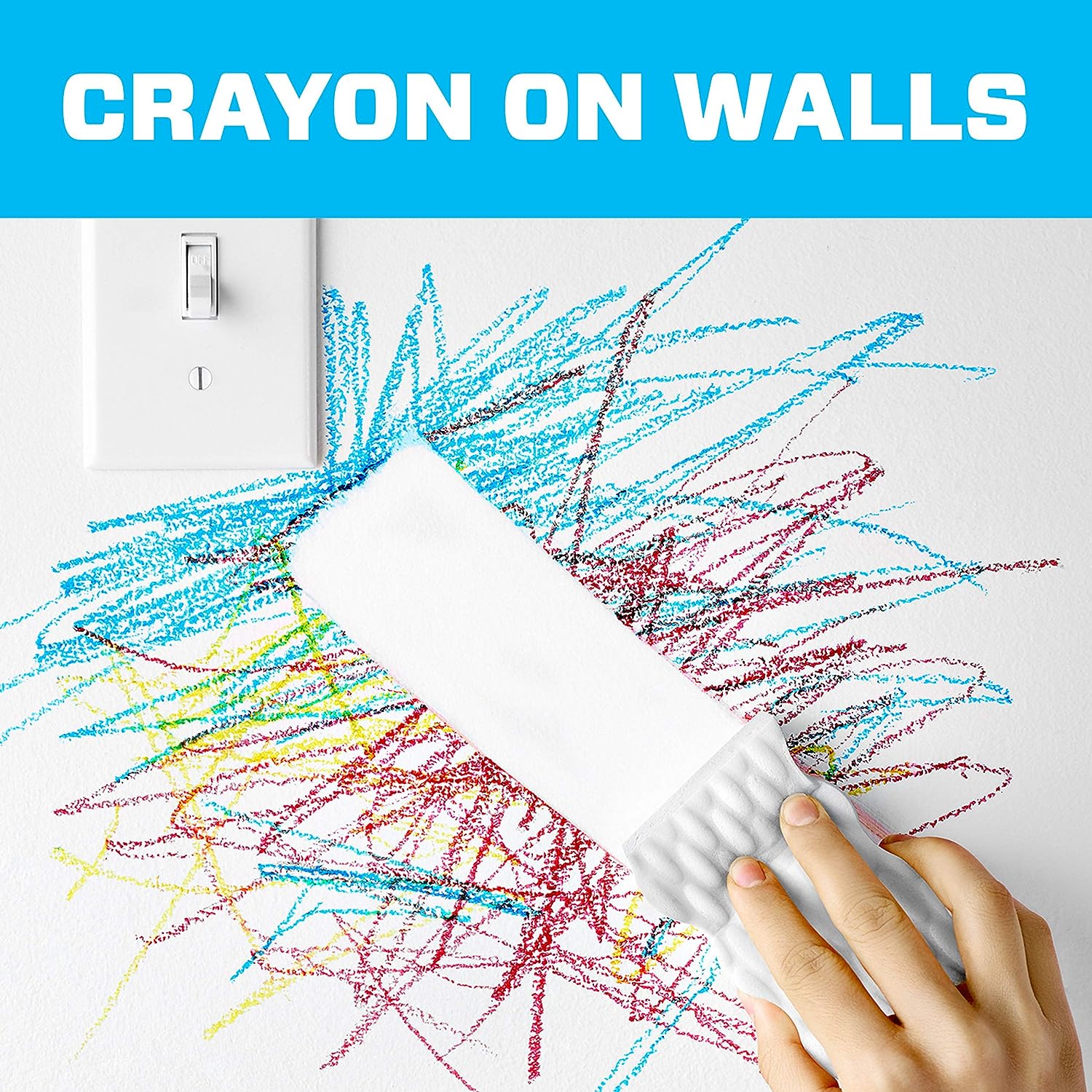 • This cleaning scrubber is tough on dirt, all around the house! Surface cleaner, wall cleaner, bathtub cleaner, oven door cleaner, erases marks on light switches, doors & much more!