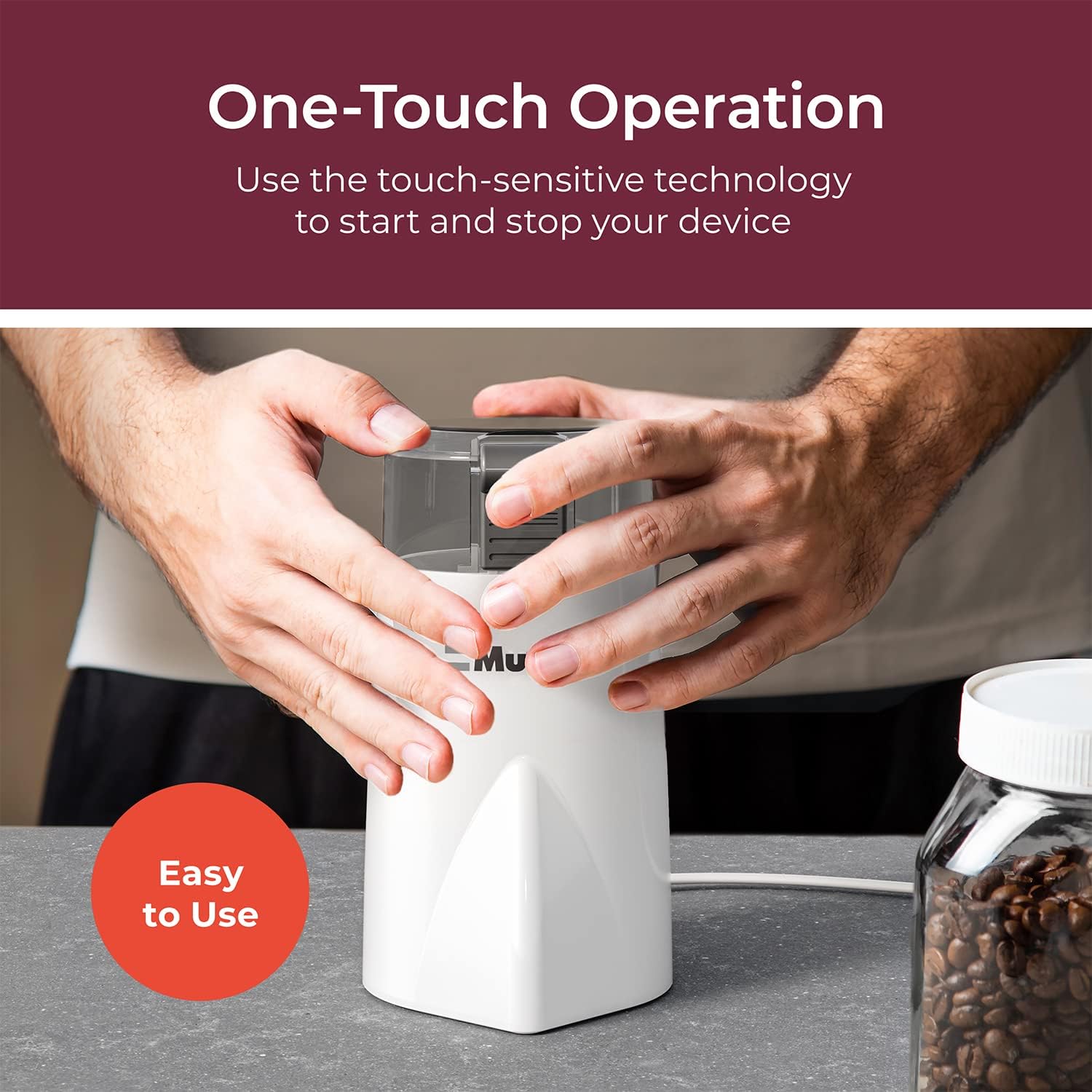 Make your morning routine that much easier: use the touch-sensitive technology to start and stop your device, depending on whether you want a coarse, medium, or fine grind.