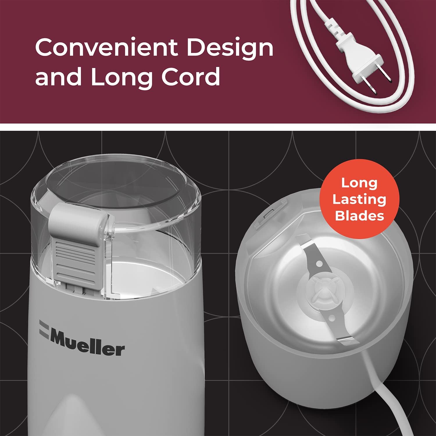 • MuellerLiving HyperGrind Precision Electric Spice/Coffee Grinder Mill with Large Grinding Capacity and Powerful Motor also for Spices, Herbs, Nuts, Grains, Grey