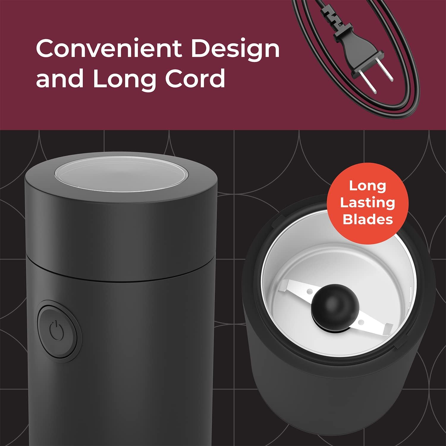 • Powerful & Efficient – Long lasting blades made from strong and durable stainless steel will easily grind any type of coffee you like, from coarse to fine quickly and efficiently with minimum grinding noise.