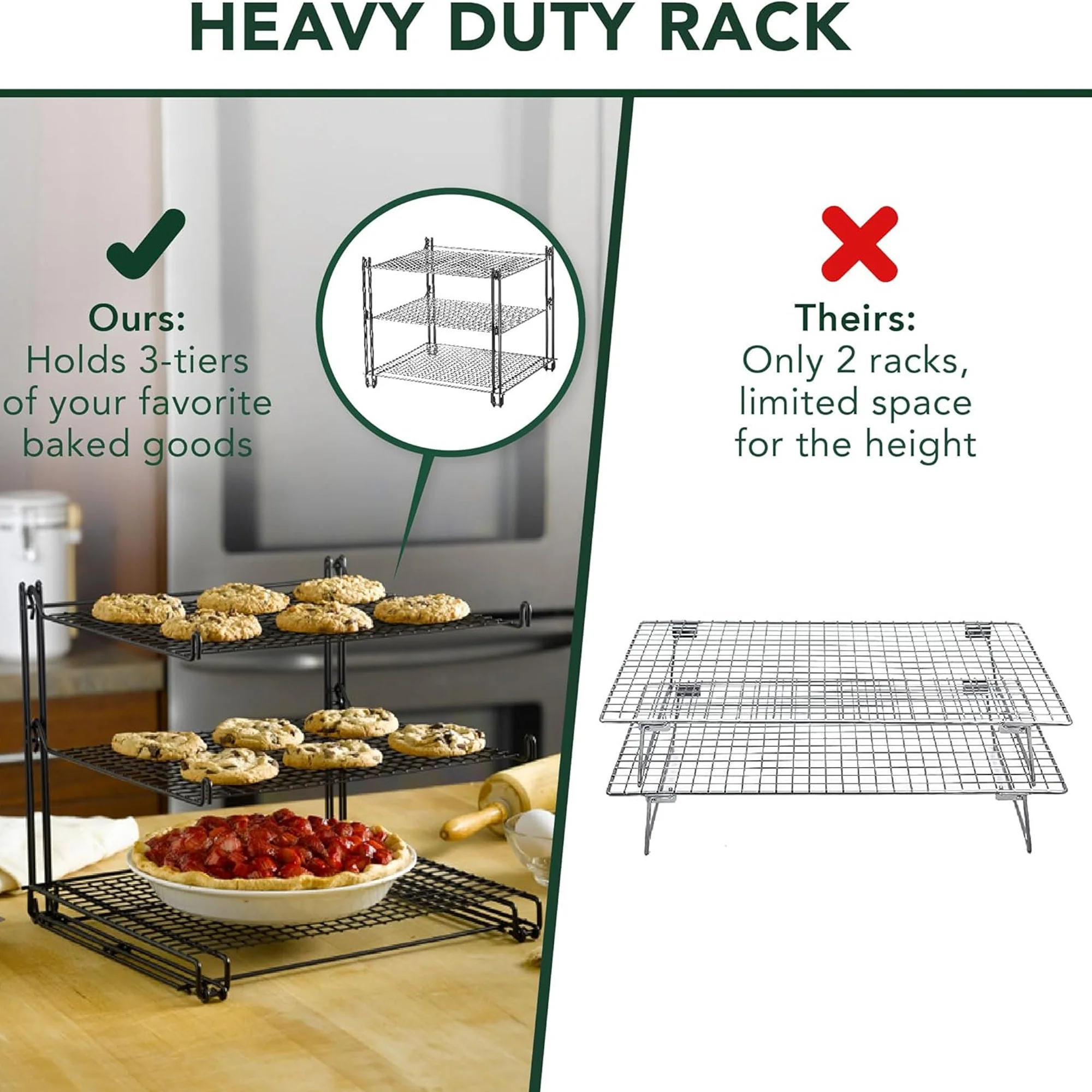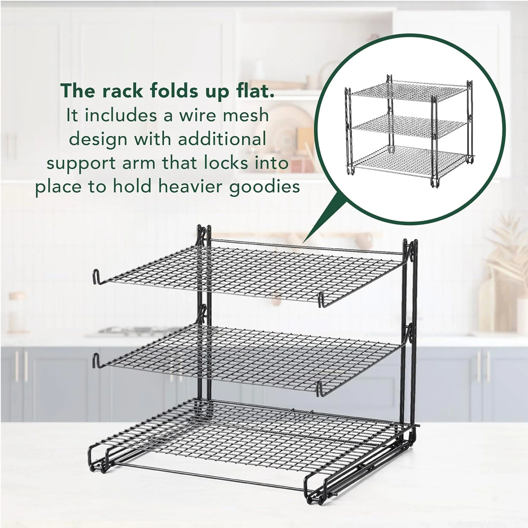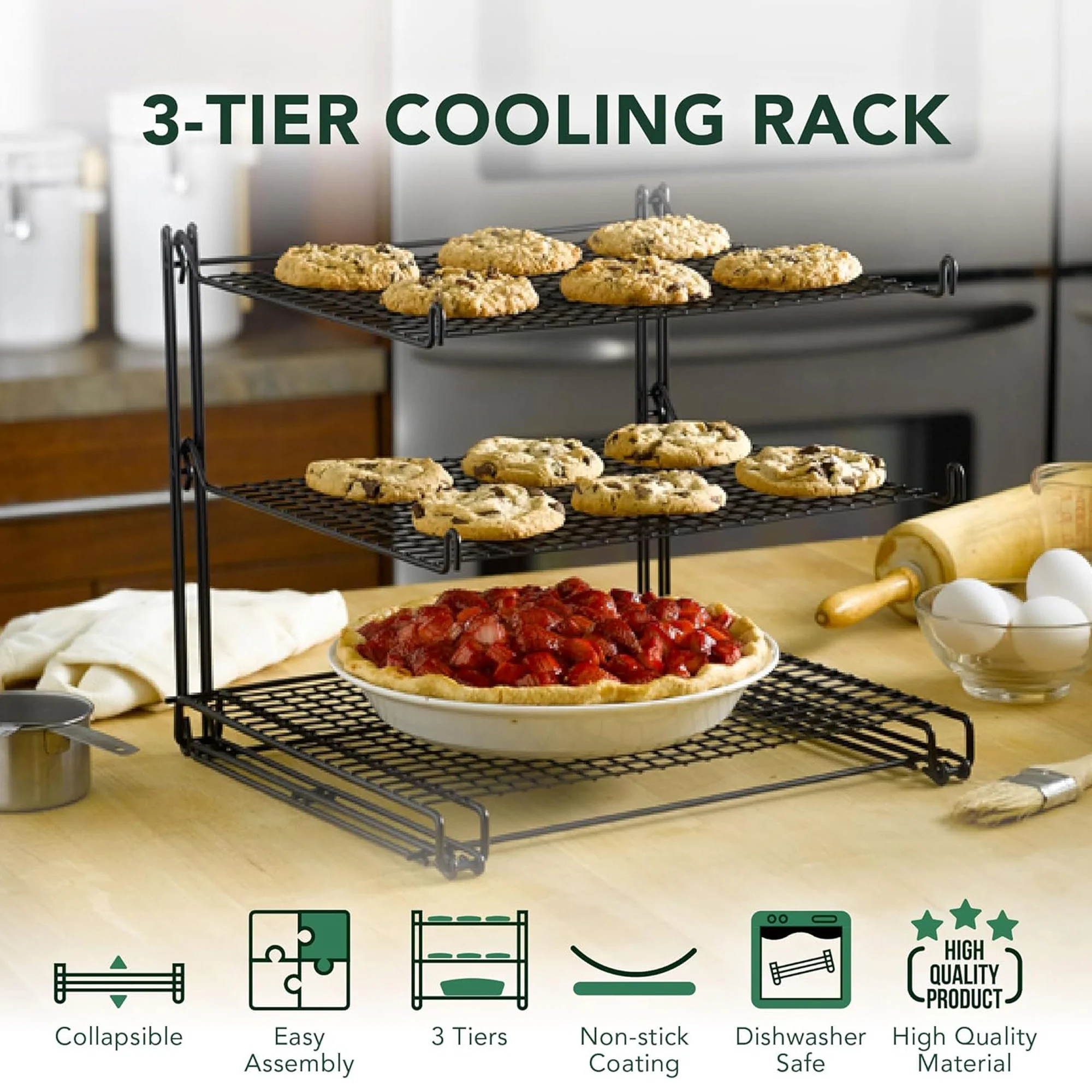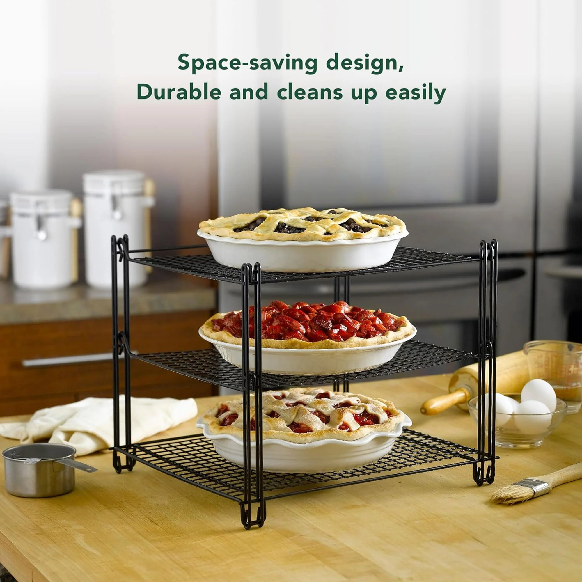 Triple your cooling power: Stack your treats high on three tiers, maximizing counter space and cooling efficiency.