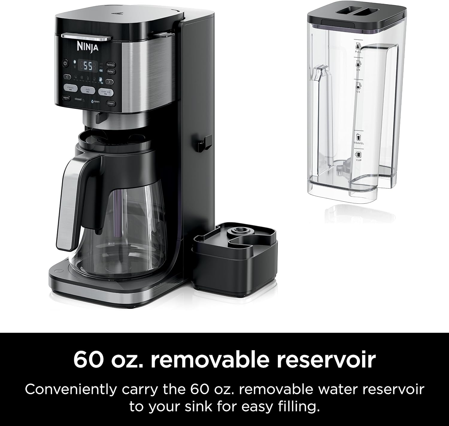 - 60-OZ MULTI-POSITION WATER RESERVOIR: Allows you to position the reservoir on the side or rear of the machine to fit your space, plus it is removable for easy refilling.