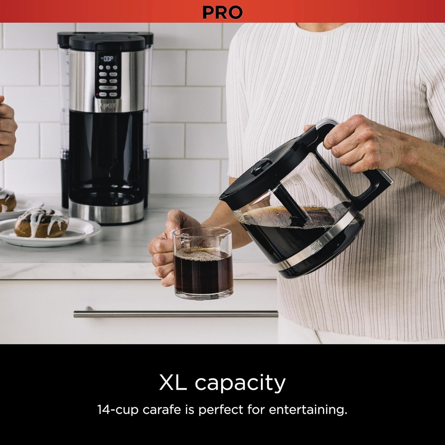• Ninja Programmable XL 14-Cup Coffee Maker PRO, 14-Cup Glass Carafe, Freshness Timer, with Permanent Filter, Black Stainless Steel, DCM201BK
