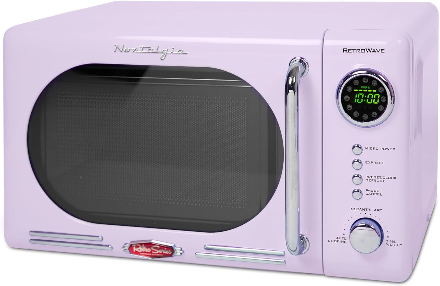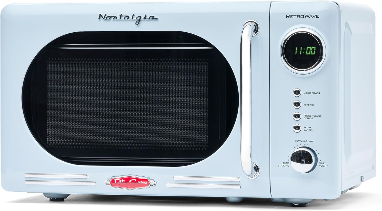 - Retro Accents : A sleek chrome door handle, control panel and accents add fun and flair to this unique retro-styled appliance