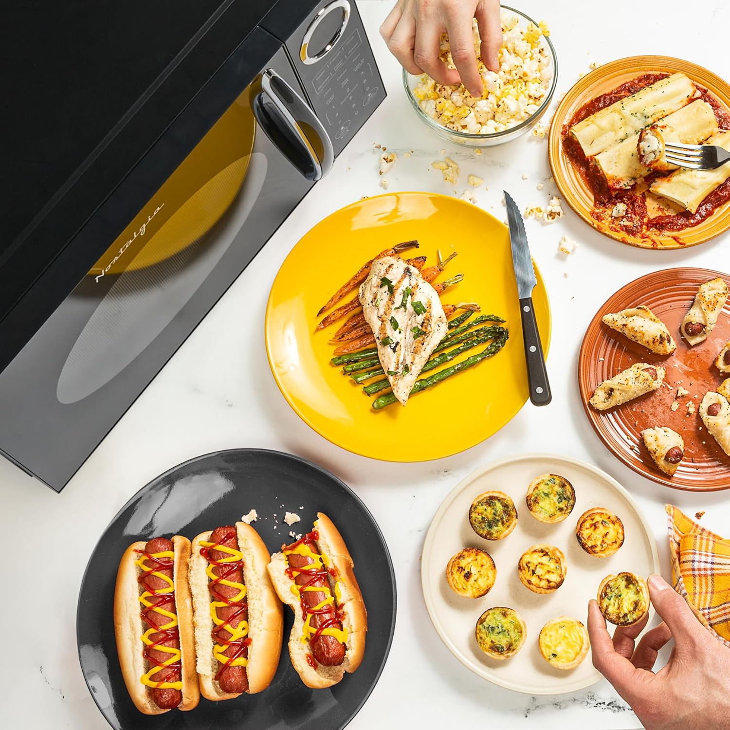 - Convenient Cooking Controls : 12 pre-programmed cooking settings, delay timer and express cooking provide options for the optimal heating of popular foods like popcorn, pizza, potatoes, veggies and more