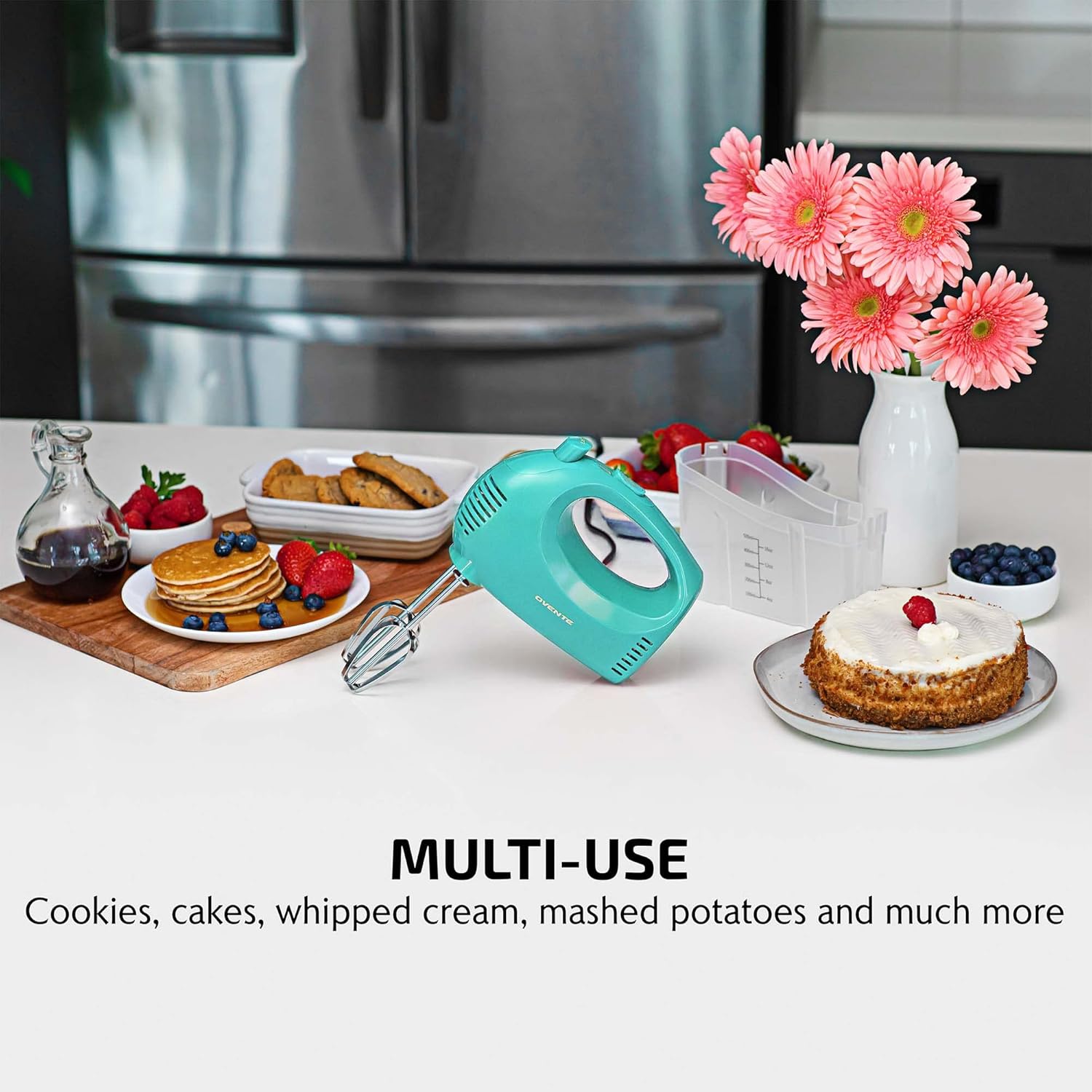 - ADJUSTABLE SPEEDS – This hand mixer has 5 mixing speeds from 1 (Lowest) to 5 (Highest) for a perfectly customizable texture and consistency for any recipe you desire.