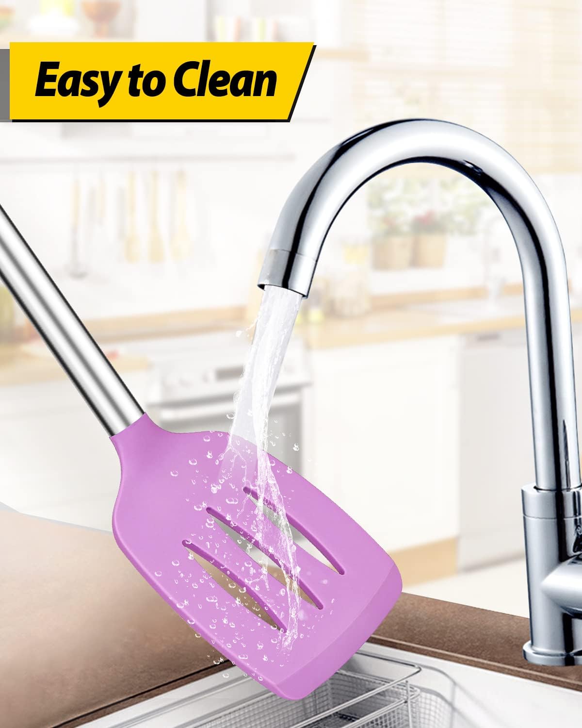 - More Safe and Healthy : Our silicone spatulas are made of food-grade silicone, free of BPA;Even at high temperatures, there is no need to worry about melting or deforming;And the soft silicone head won't scratch the coating, it can better protect your pot