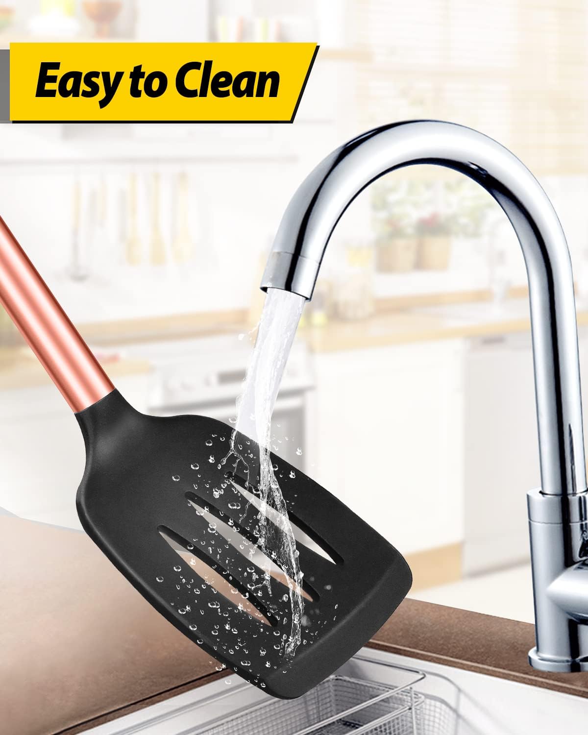 - Thoughtful Design : The good-quality 18/8 stainless steel keeps you away from the trouble of kitchen utensils rusting or breaking; This anti-scald silicone handle is not easy to conduct heat and is more comfortable to hold than traditional utensils