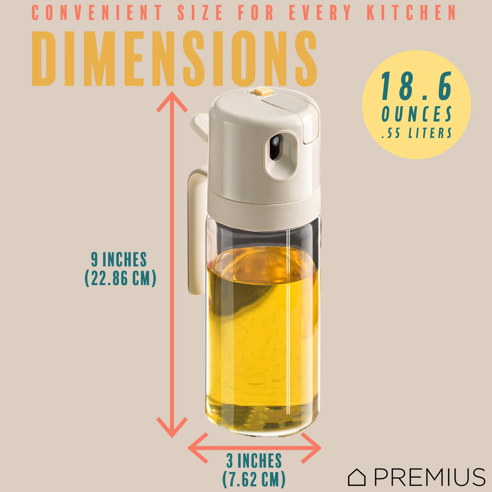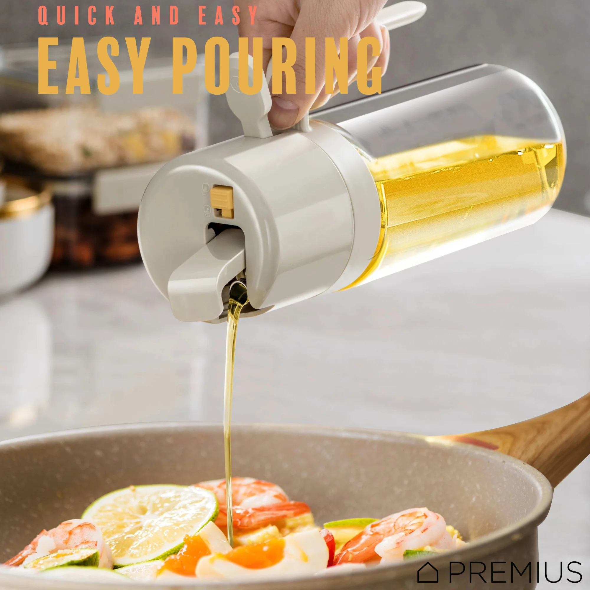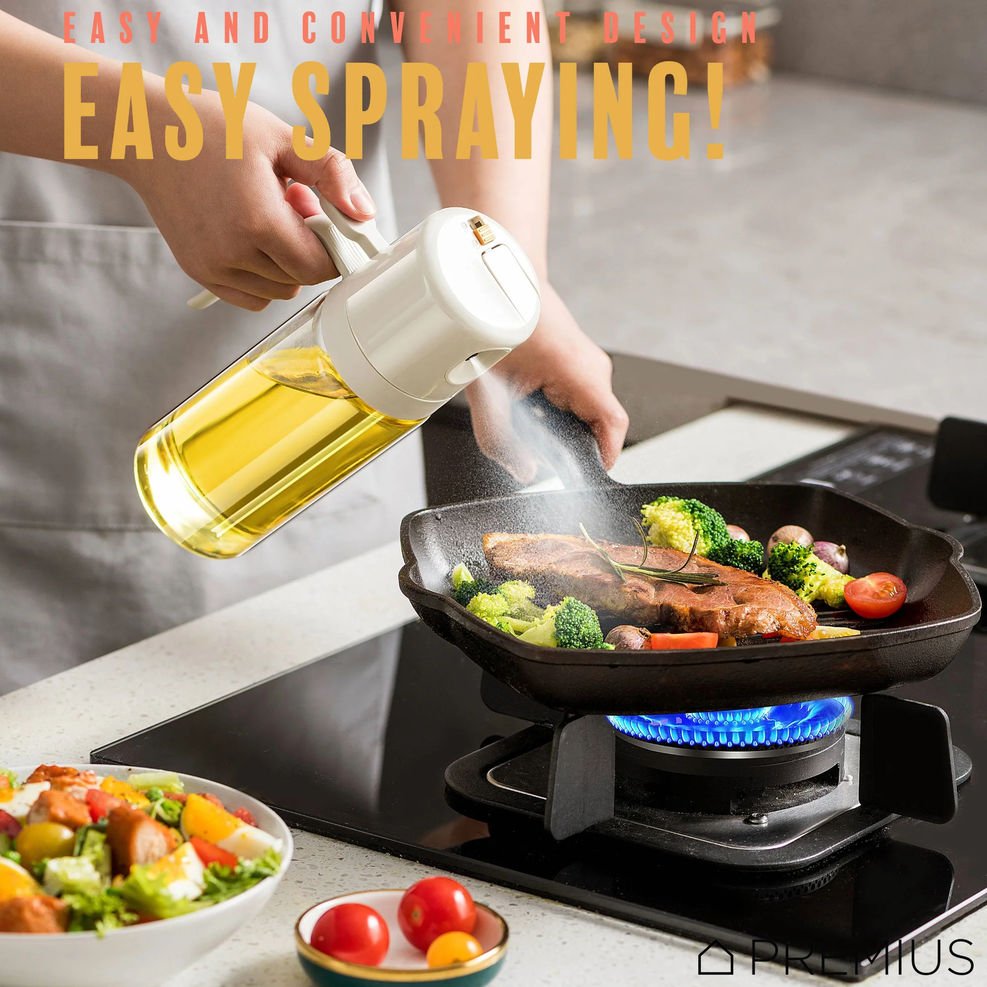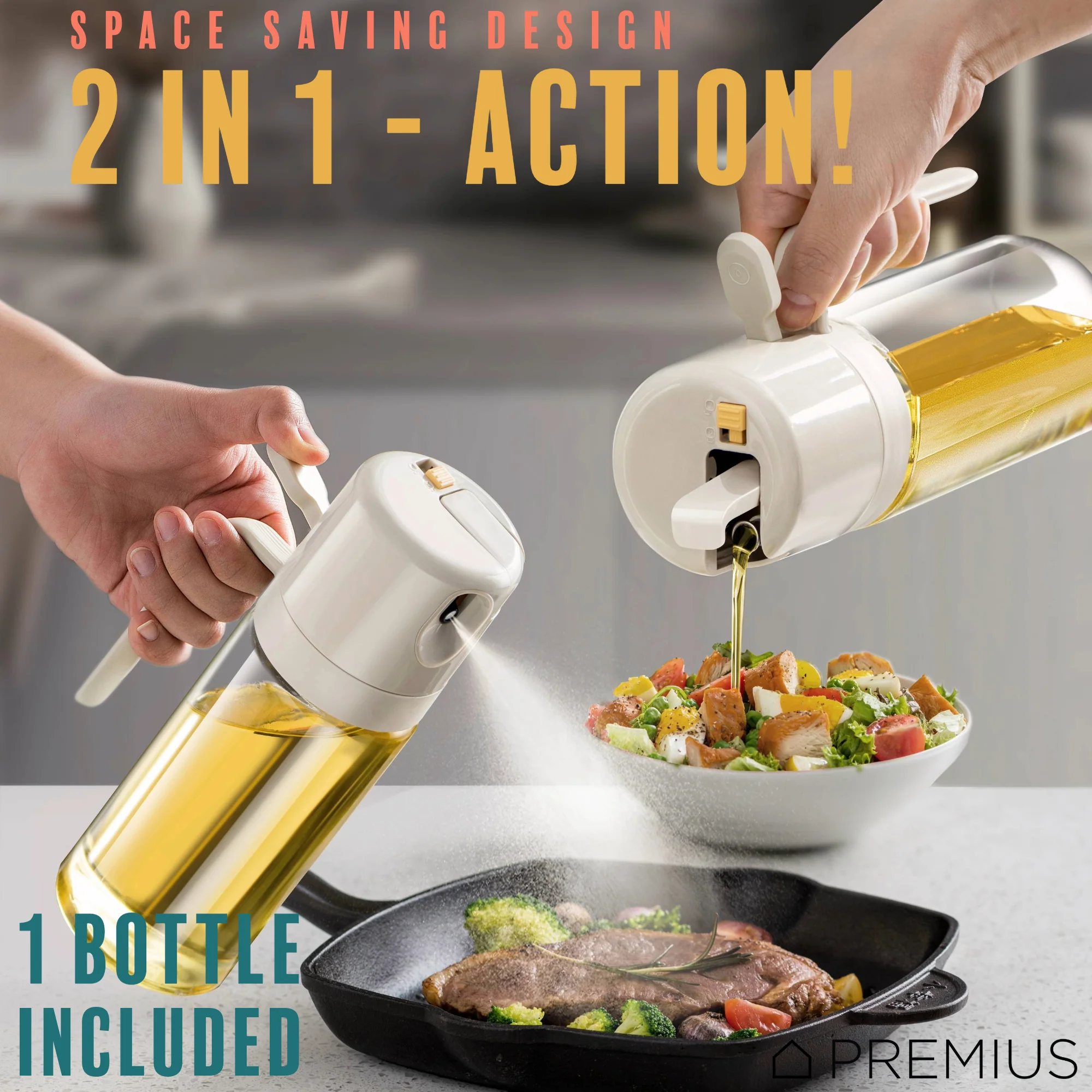 - Two Functions, One Bottle: Enjoy the versatility of both a controlled pour and a fine mist. The dispenser is perfect for drizzling oil on meats, while the sprayer lets you coat pans and vegetables with a light, even layer.