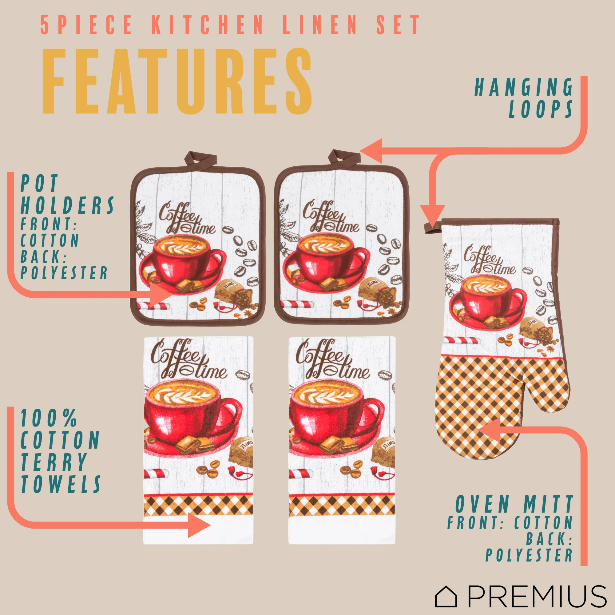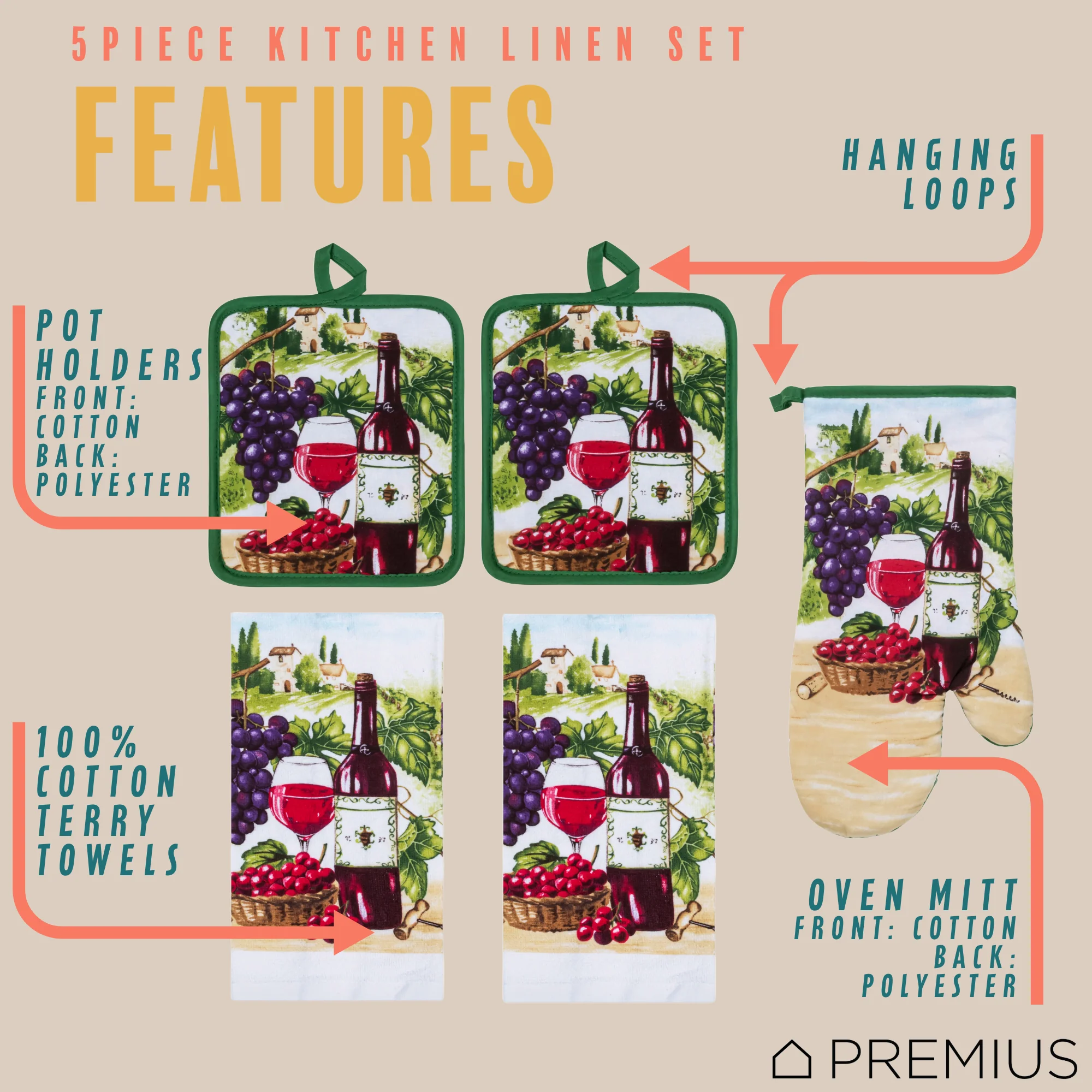 Spruce Up Your Kitchen with a PREMIUS 5-Piece Kitchen Linen Set!