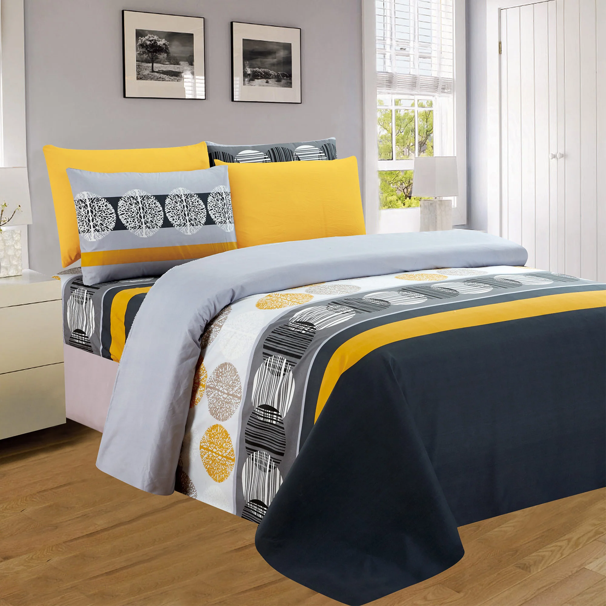 The eye-catching black and yellow geometric pattern adds a touch of graphic intrigue to your décor, perfect for those who love a bold and modern aesthetic.