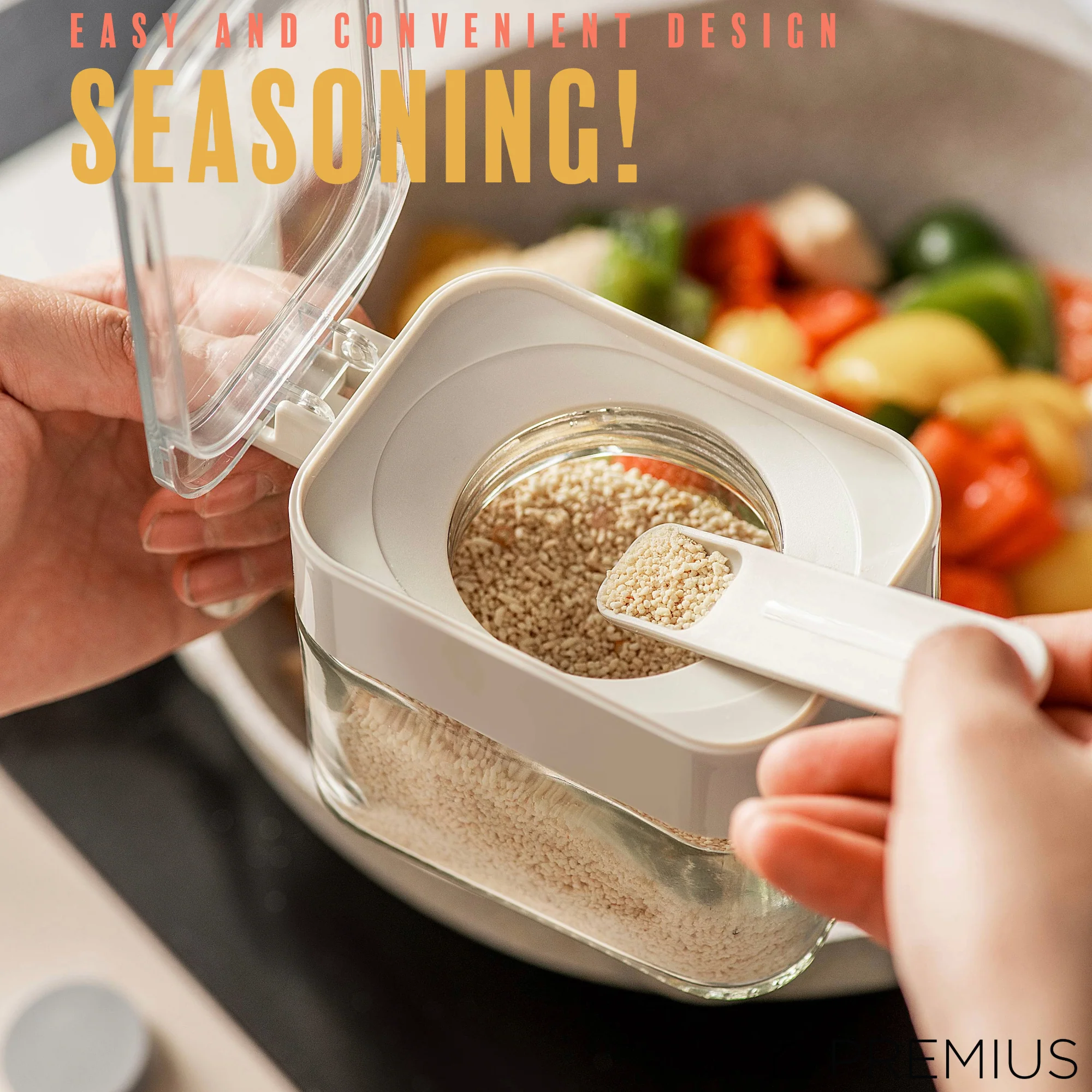 - No-Touch Convenience: Wave goodbye to messy fingers and contaminated spoons! The ingenious lid dispenses spices with a simple press, eliminating cross-contamination and keeping your kitchen hygienic.