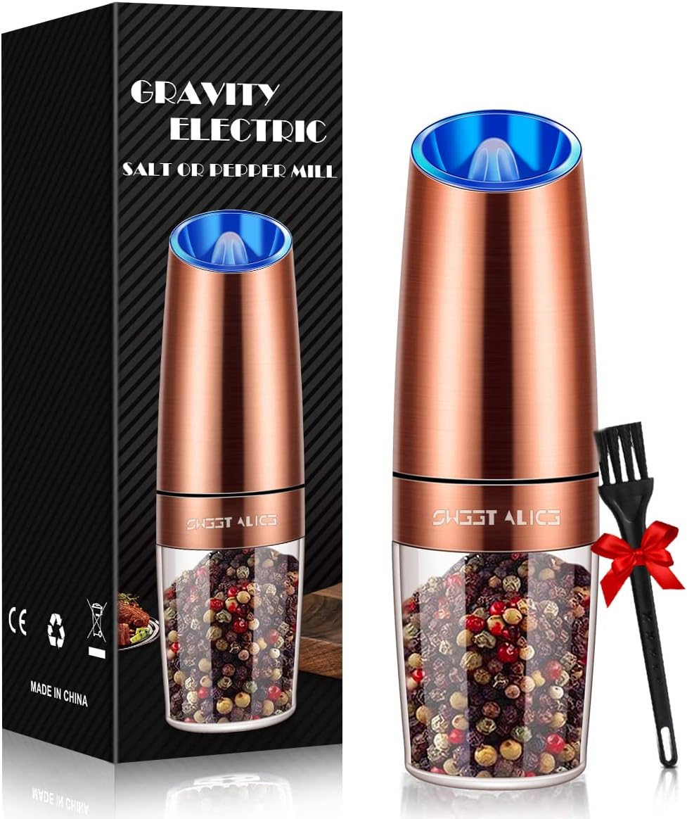 - 【Automatic Operation】Our Electric Pepper and Salt Grinder with Gravity sensor switch, you even needn’t to press a button, Simply flipped the grinder and you will have fresh ground spices, Convenient and funny. Battery powered, each grinder requires 6 AAA batteries (batteries not included, Please prepare batteries in advance).