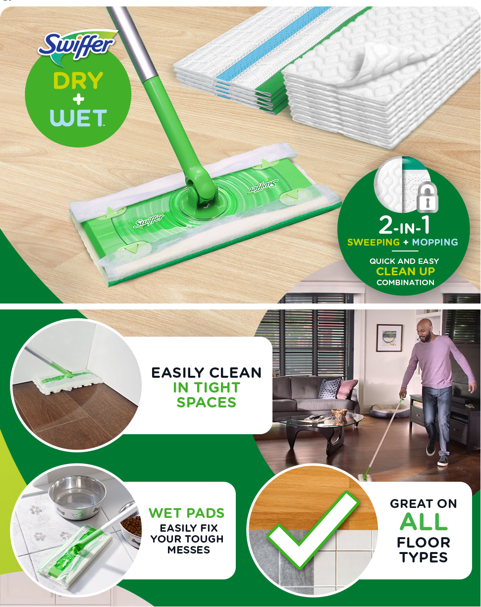 - Safe on all finished floors* *Do not use on unfinished, oiled or waxed wooden boards, non-sealed tiles or carpeted floors because they may be water sensitive.