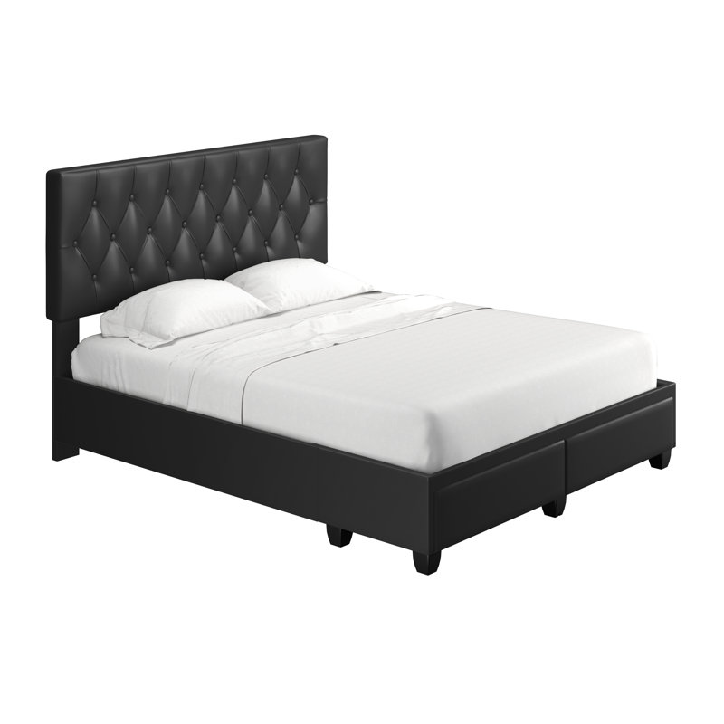 Create a gorgeous appeal to any room with the Verona faux leather storage bed. Masterfully designed with a tufted faux leather headboard and two storage drawers make this bed an immediate eye-catcher. Its pre-assembled slats combined with a drawer deck, make this bed incredibly supportive. This storage bed can be used with or without a box spring.