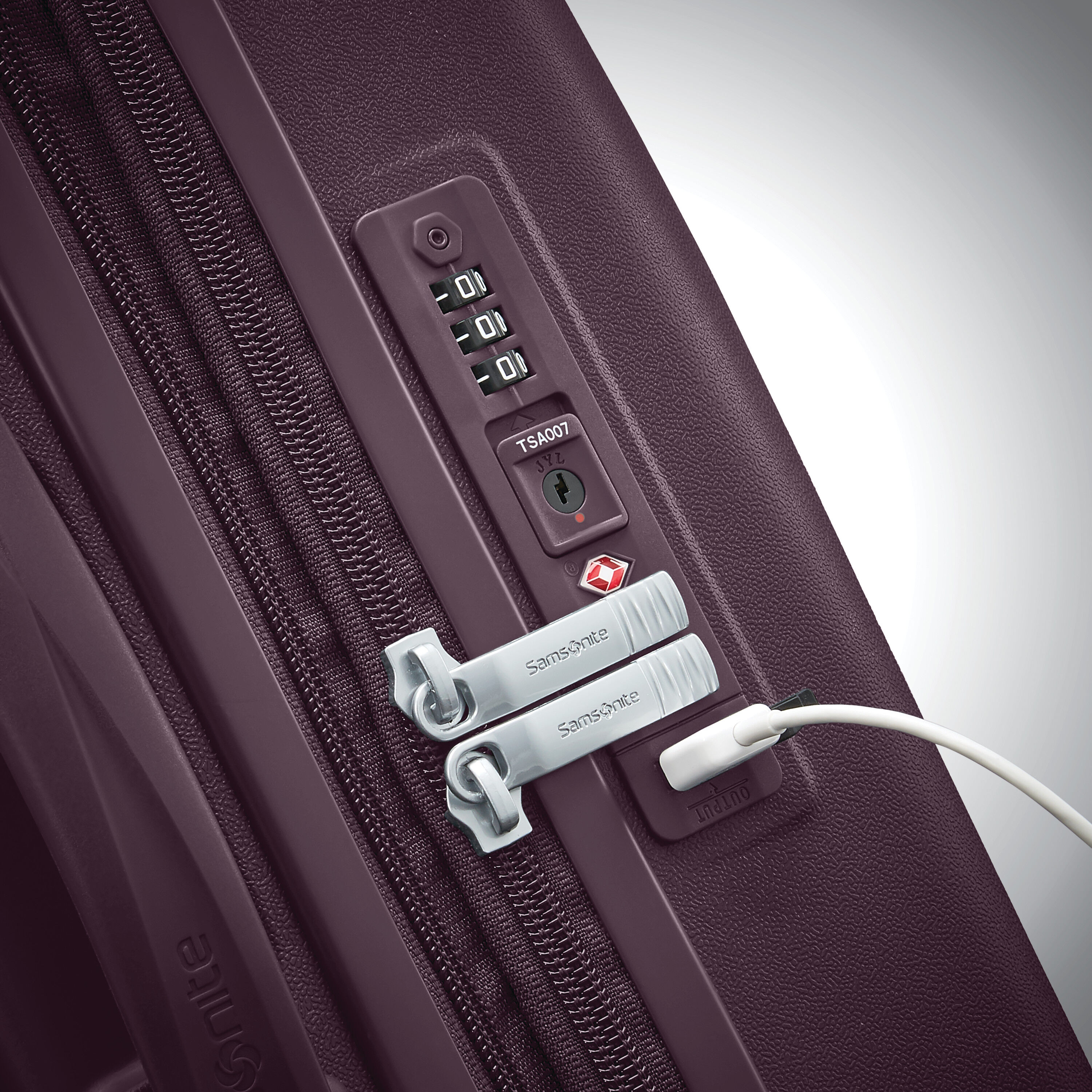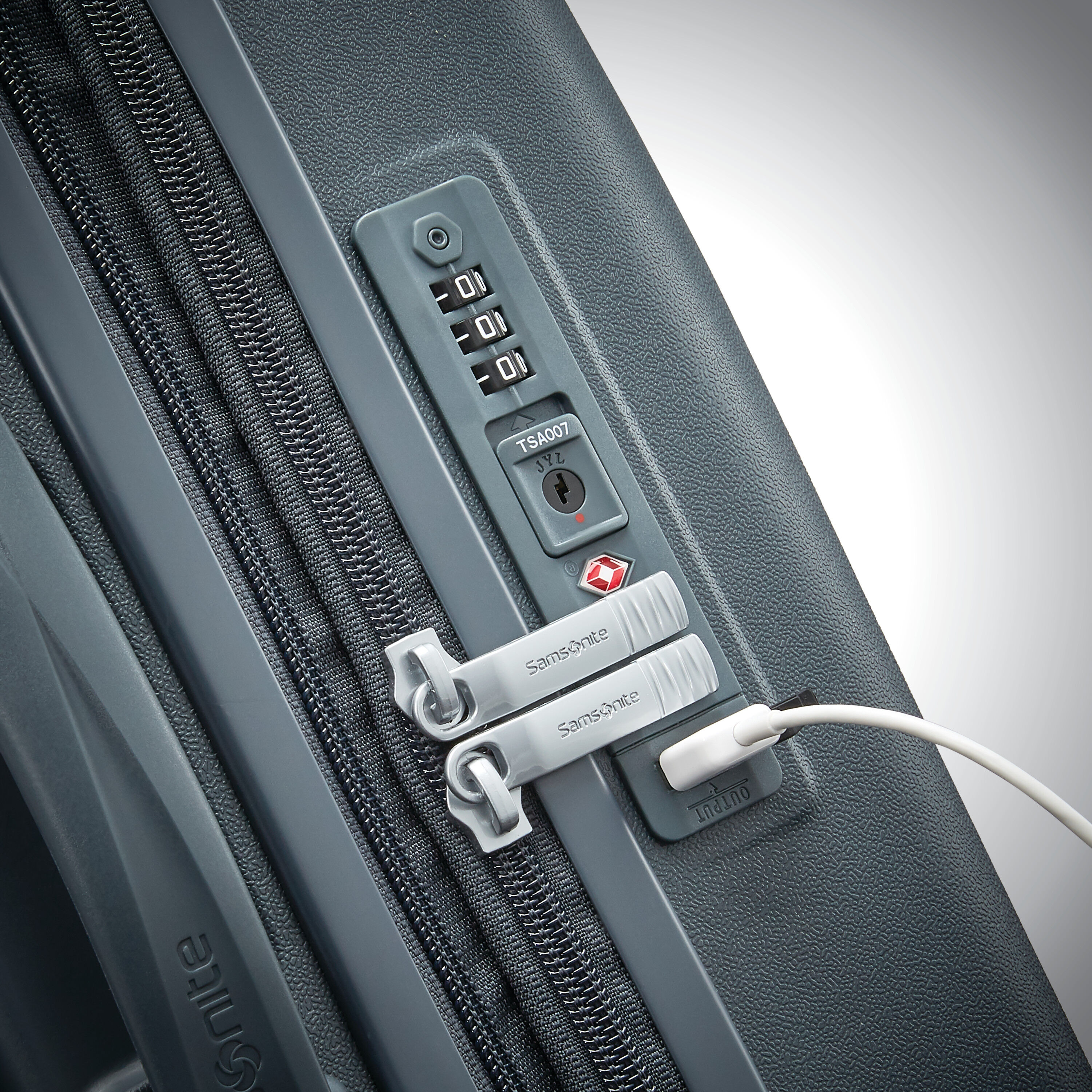 • On the Carry-on spinner, charge your devices with a USB port integrated into the TSA-approved lock panel (battery not included)