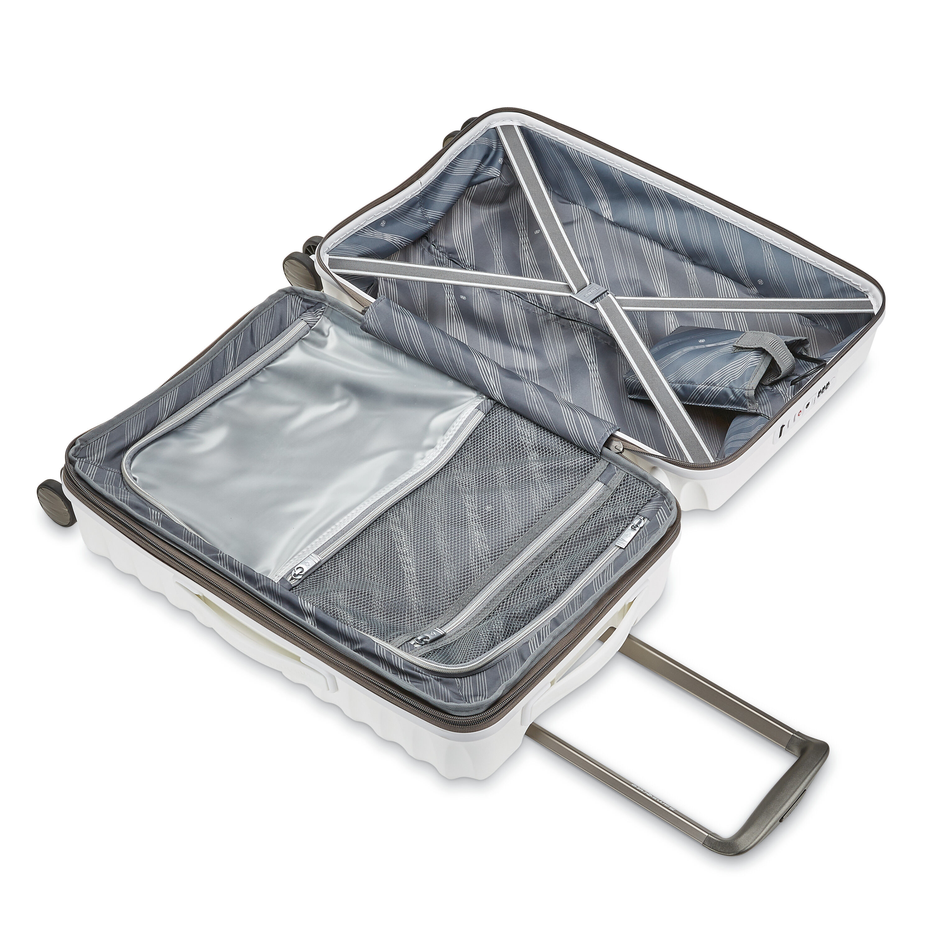 Never confuse bags at the luggage carousel again. Your Voltage bags stands out with its artfully contoured polypropylene shell, which also resists abuse from baggage handling. The three-dimensional exterior opens to a spacious interior that further expands for extra packing capacity. And integrated pockets keep your belongings neatly organized. A dynamic design for a dynamic travel experience.