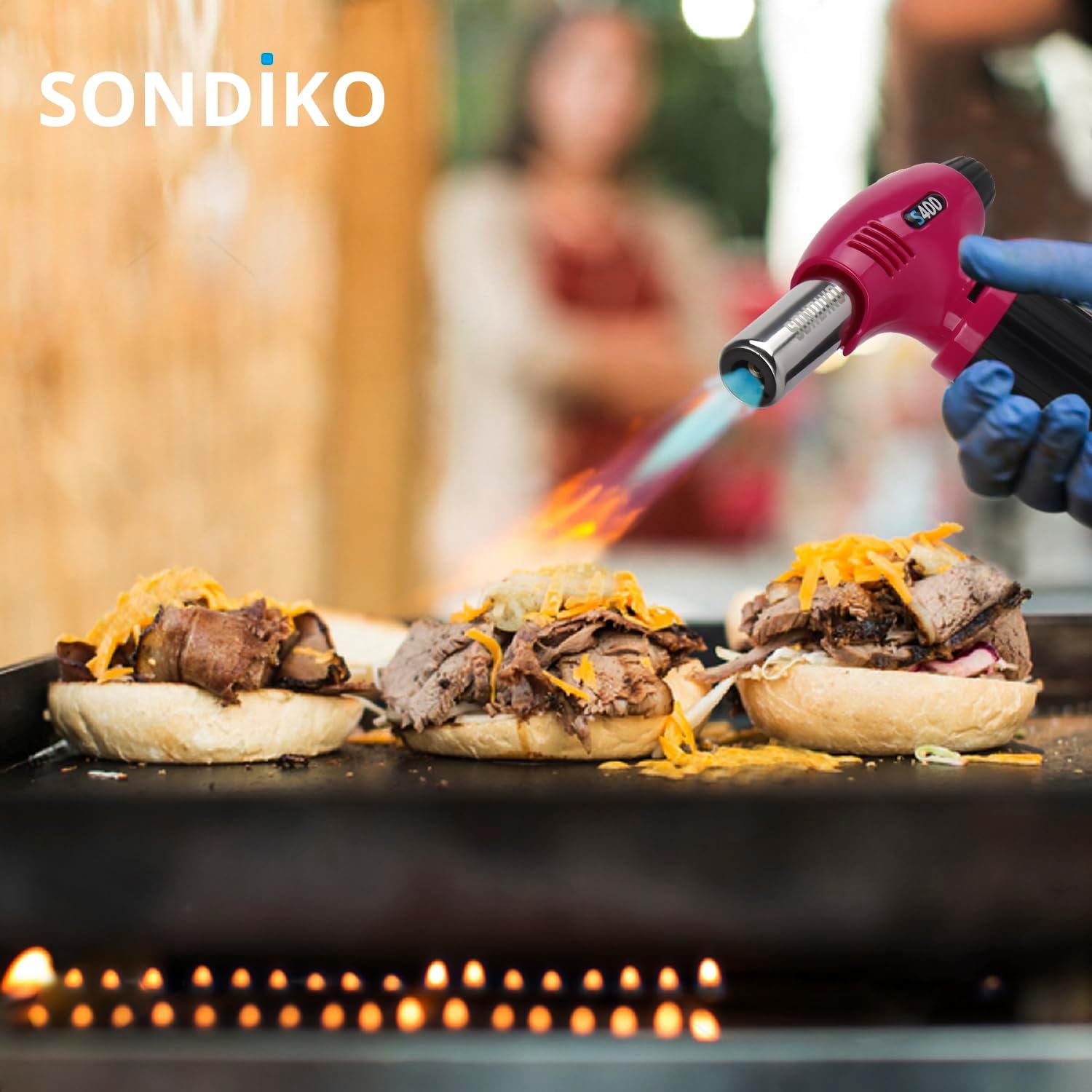 Sondiko Butane Torch S400, Refillable Kitchen Torch Lighter, Fit All Butane Tanks Blow Torch with Safety Lock and Adjustable Flame for Desserts, Creme Brulee, and Baking—Butane Gas Is Not Included