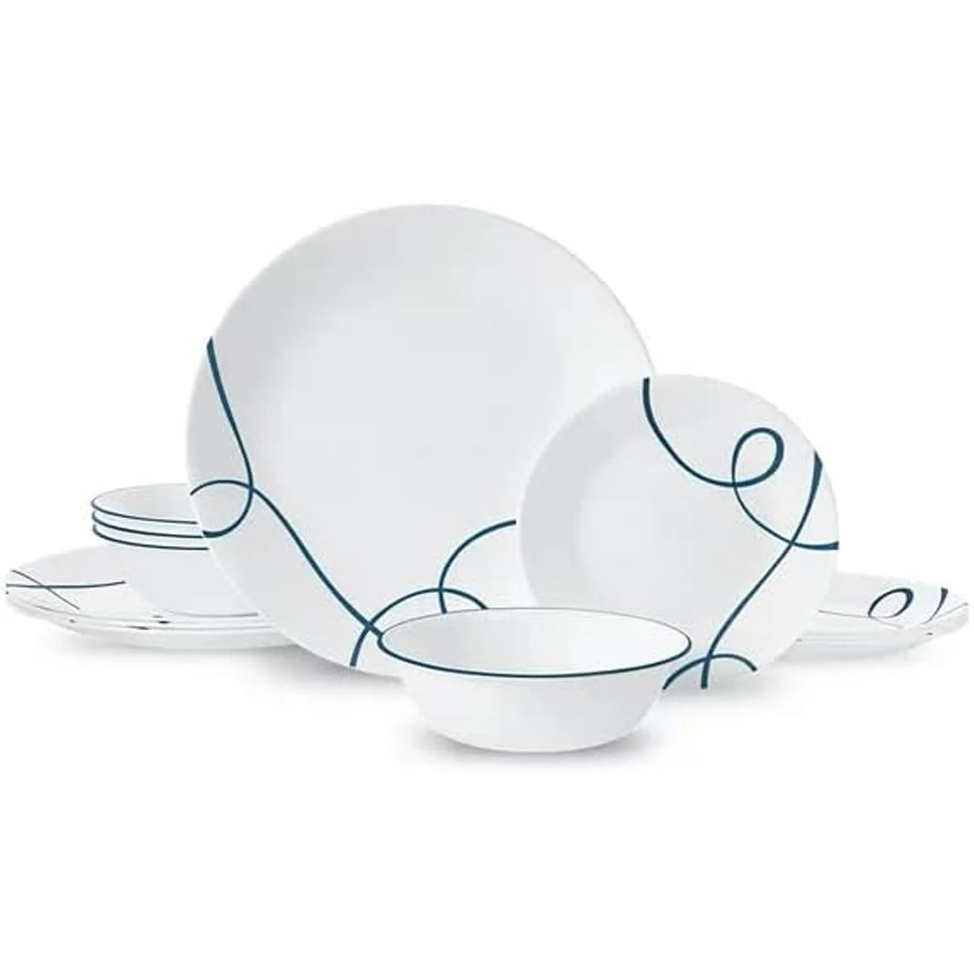 Corelle Classic Lia 12-Piece Chips & Cracks Resistant Dinnerware Set, Service for 4, White-Blue
