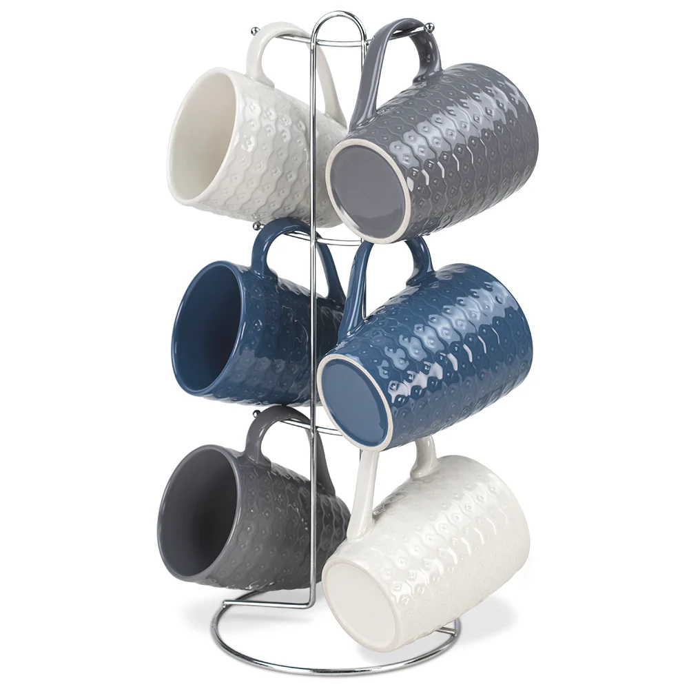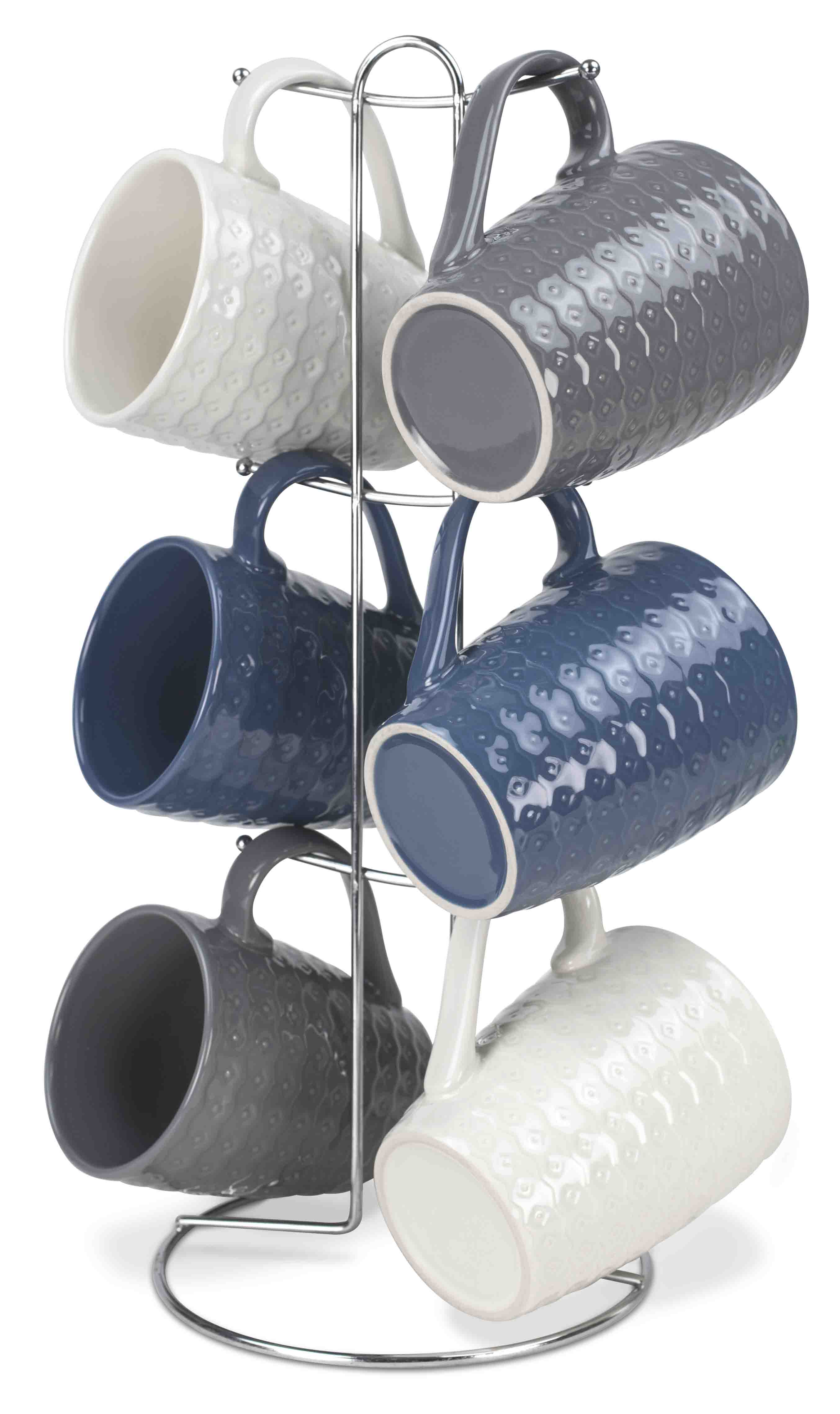 Home Basics 7-Piece Diamond Mug Stand Set 6-Mugs, Navy-Gray-White