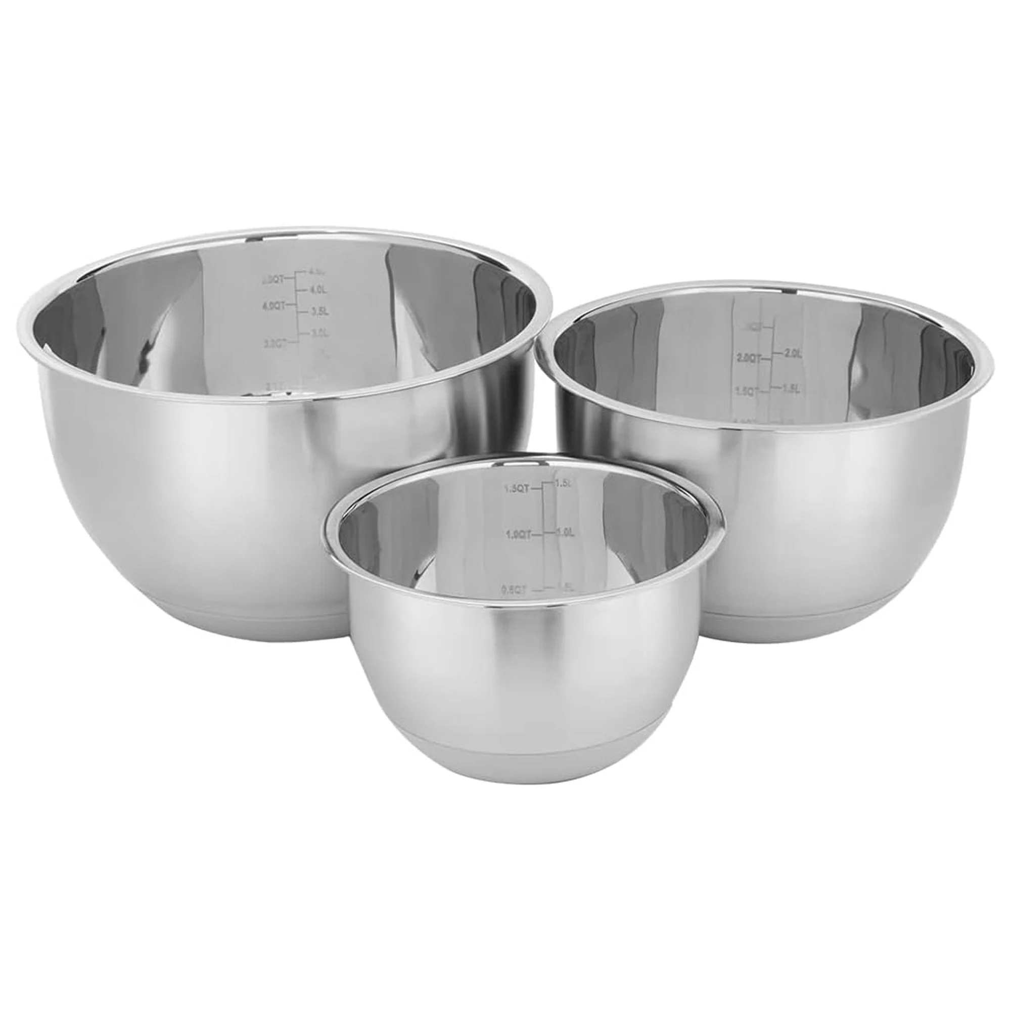 Home Basics 3 Piece Stainless Steel Nesting Mixing Bowls with Rubber Bottoms