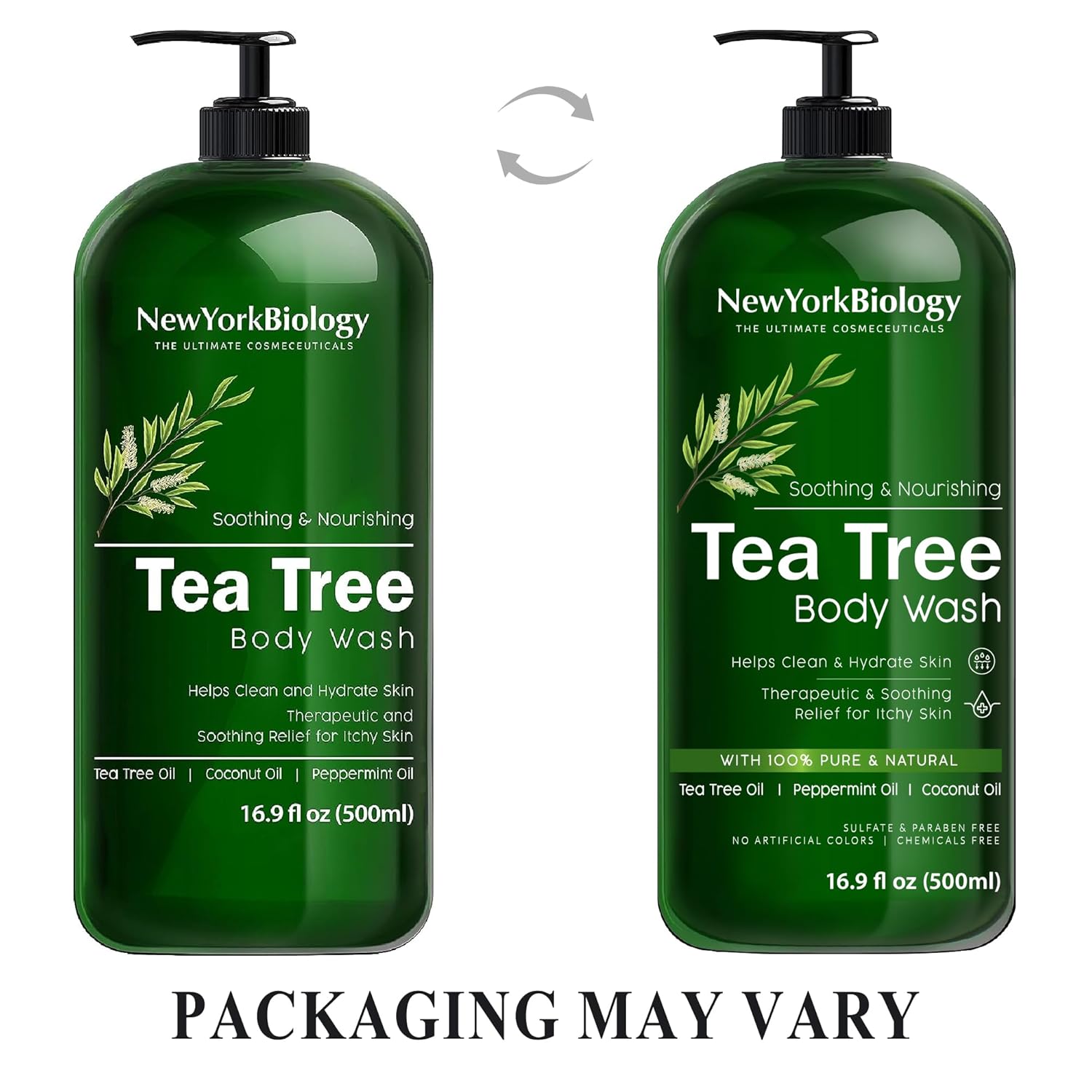 New York Biology Tea Tree Body Wash for Men and Women - Moisturizing Body Wash Helps Soothe Itchy Skin, Jock Itch, Athletes Foot, Nail Fungus, Eczema, Body Odor and Ringworm - 16.9 Fl Oz