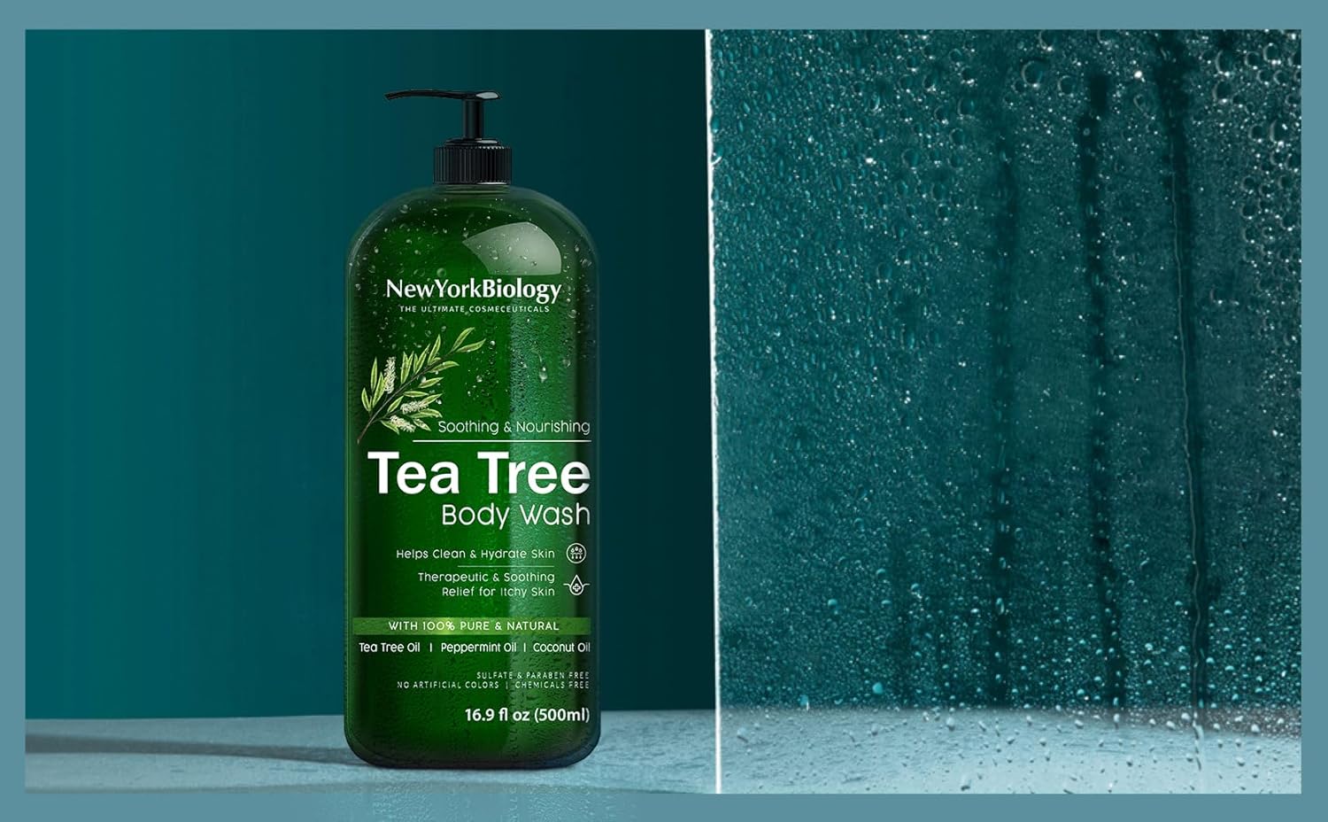 • New York Biology Tea Tree Body Wash for Men and Women - Moisturizing Body Wash Helps Soothe Itchy Skin, Jock Itch, Athletes Foot, Nail Fungus, Eczema, Body Odor and Ringworm - 16.9 Fl Oz