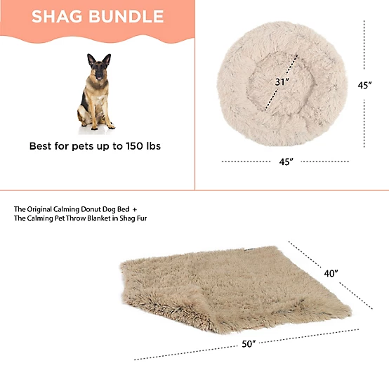 - Youll love the bargain; your pets will love the Bundle Pet Gifts. Best friends by Sheri brings you the all time favorite of The Original Calming Shag Donut Cuddler dog bed now with a matching Calming Shag Pet Throw Blanket.