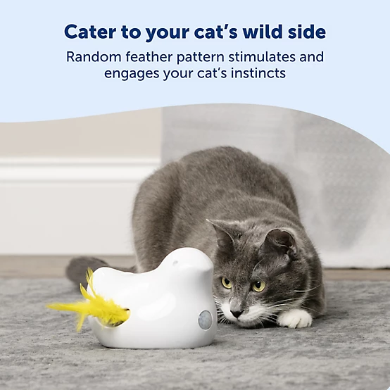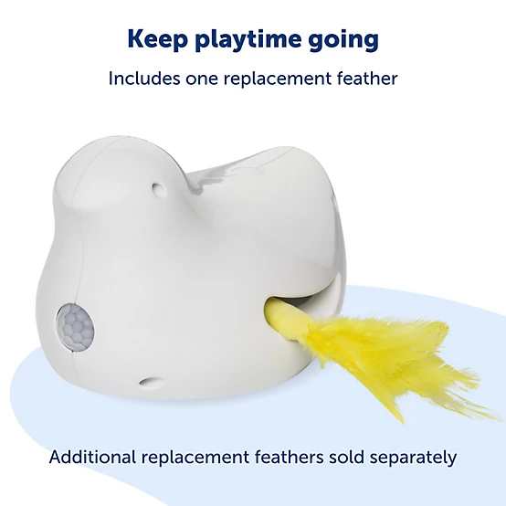 A little birdie told us what your cat needs in her toy box. The Peek-a-Bird Electronic Cat Toy has 2 play modes: set the toy to one-time-play or play-all-day mode to keep your cat engaged and entertained throughout the day. In play-all-day mode, the Peek-a-Bird's motion sensor will wake the toy if your cat walks by, and automatically wakes every two hours. With an opening on either side, the feather randomly peeks out and flutters, then disappears. Includes a replacement feather. Requires 3 AA batteries (not included). PetSafe brand is here to help you and your pet live happy together.