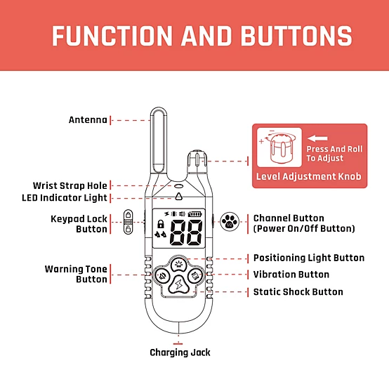 - The remote control design of this dog trainer fits your palm perfectly, plus the knob for easy adjustment, it is very easy to operate with one hand.