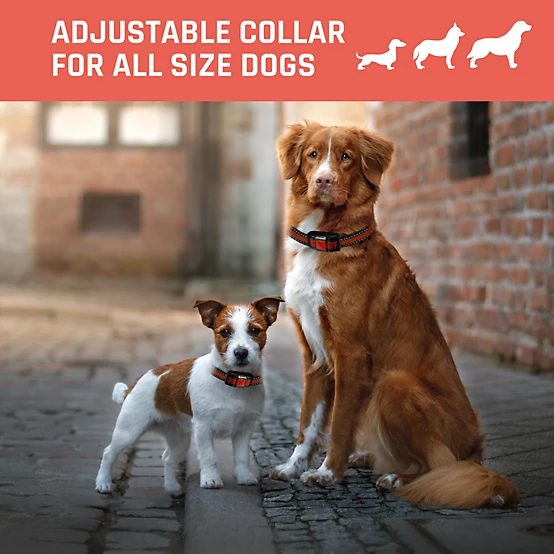 - Adjustable webbing collar fits dogs of all sizes.