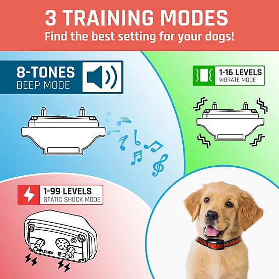 - 1~99 levels of adjustable shock, 1-16 levels of adjustable vibration and 8 different tones provide a variety of ways to train and interact with your dog.