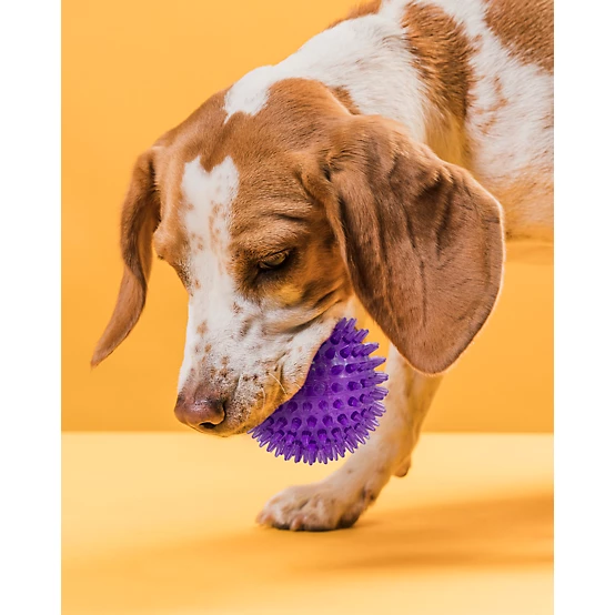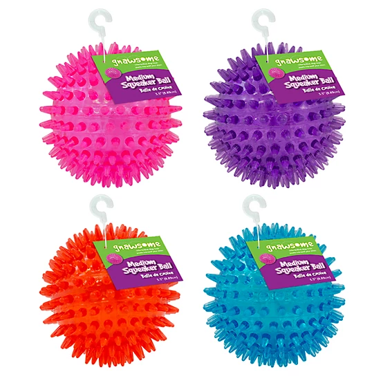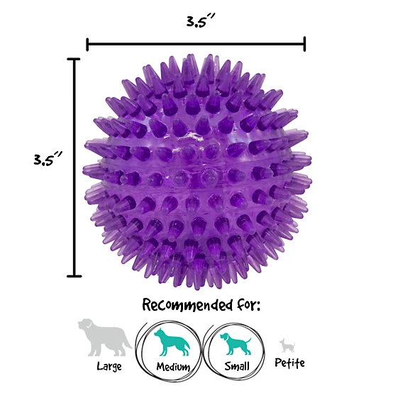 Give your pal the squeaking action he loves with the Gnawsome Spikey Ball Dog Toy. This classic dog toy features a unique spiky texture that helps massage gums with every fetch and a loud squeaker inside for extra excitement. Made of food-grade, BPA-free TPR rubber, this pet toy is safe, non-toxic and perfect for everyday play.