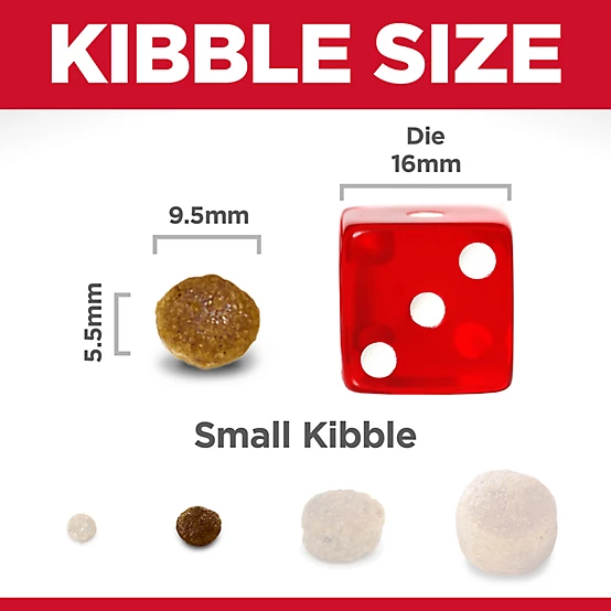 Little dogs can have a big appetite, so treat your small-breed dog to Hill's Science Diet Adult Small Bites Dry Dog Food. Packed with omega-6s & Vitamin E to give your canine a beautiful skin & coat, this premium adult dog food also provides high-quality protein to help your full grown dog maintain lean muscle. The small kibble is perfect for small and toy breeds, and since adult dogs need a strong gut, natural fibers help promote healthy digestion. This delicious adult dog food made with natural ingredients is specially formulated with decades of cutting-edge research to be a great-tasting meal your adult dog can truly enjoy.