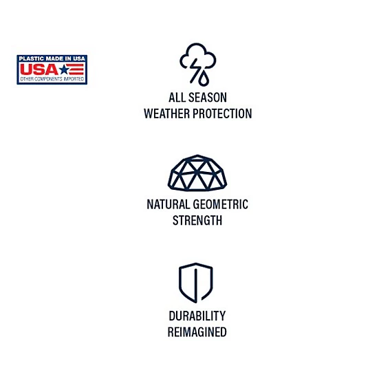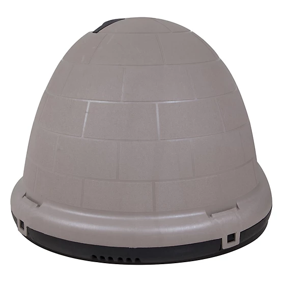 The Petmate Dog House protects your dog from outdoor elements. This extra large dog house features an exclusive, patented dome design that keeps the house stable in high winds and naturally sheds snow and other debris that could collect on top. Our classic igloo shaped dog house can be perfectly paired with the Petmate Indigo Dog House Door or Pad. It's recommended for dogs weighing 90 to 125 lb. Made in the USA.