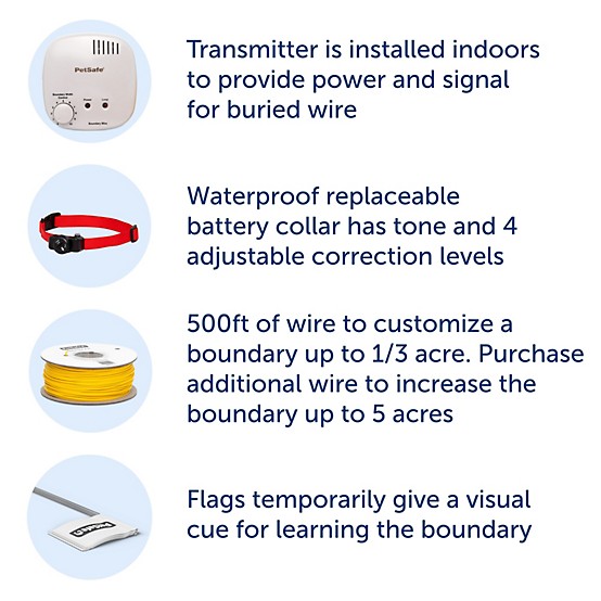 - 1/3 ac. Coverage - 500 ft. of included wire lets you contain up to a 1/3-ac. yard; purchase additional wire to contain up to 5-ac.