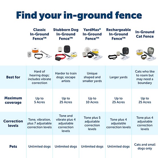 Dogs love to play so we've designed a fence that gives them more space to run! with standard in-ground fences, your dog gets a correction before he steps over the buried wire. But with our YardMax In-Ground Fence, your dog won't get a correction until after he steps over the buried wire, giving him the feeling that the correction area is infinite! with this fence you'll get 500 ft. of wire so you can fence in a 1/3-acre yard. If your yard is bigger, just purchase more wire to fence in up to 10 acres for your pet. You'll also get 1 YardMax Rechargeable In-Ground Fence Receiver Collar which has a tone-only mode and 5 levels of safe, static correction that you can adjust based on how your dog responds during training. with a little training, your dog will learn his new play area in just 2 weeks! If he ever tries to run through the boundary, the infinite correction area outside the boundary will help encourage your pet to turn and head back home. If you have more than 1 pet at home, purchase additional receiver collars so all of your pets can safely play in the yard together. Your pet deserves the best. Trust PetSafe to keep your pet healthy, safe and happy.