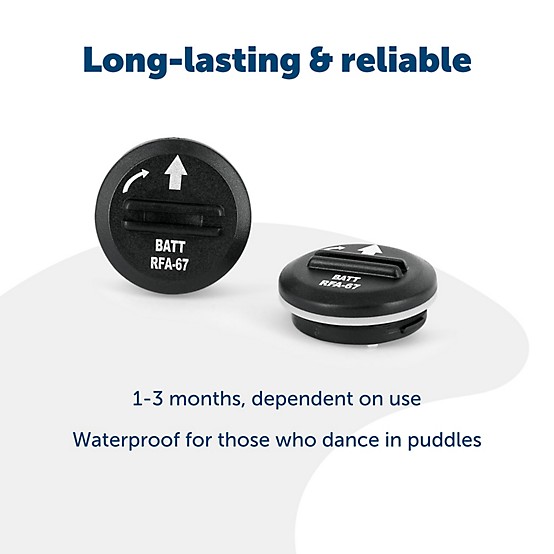 The PetSafe RFA-67 6V Replacement Battery 2-Pack are replacement batteries that work with the PetSafe bark collar, in-ground and wireless fence receiver collar systems. These batteries are waterproof and last 1-3 months, depending on use. PetSafe brand is here to help you and your pet live happy together.