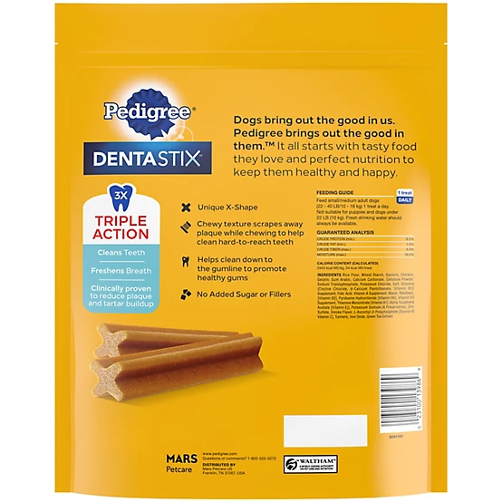 DENTASTIX Original Flavor Dental Bones Dog Treats, Small/Medium, 1.57 lb., 45 ct.