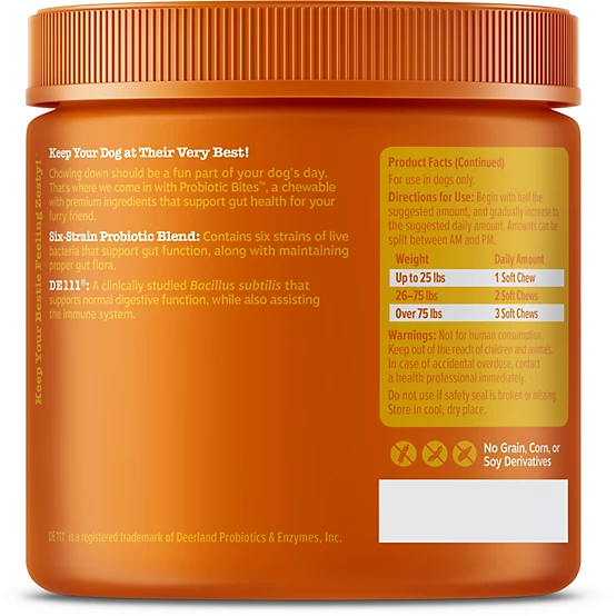 Zesty Paws Probiotic Bites Supplements for Dogs, Pumpkin Flavor, 90 ct.